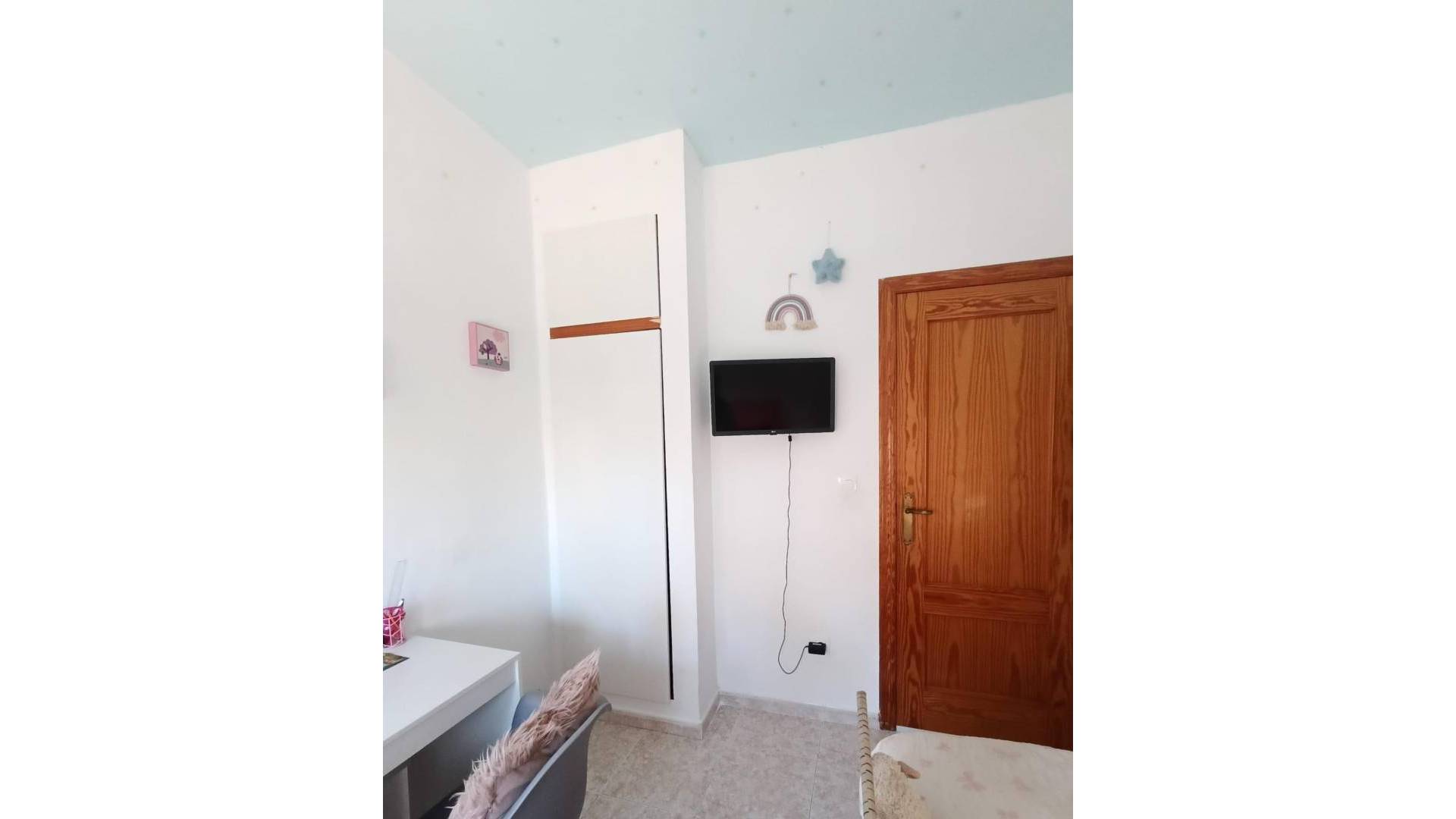 Townhouse in La Laguna de Torrevieja, a haven where the tranquility of the neighborhood meets the charm of having your own pool and spaces to enjoy everyday life with family and friends. This furnished home invites you to move in immediately, with everything ready to experience the relaxed pace of the Costa Blanca, where sunshine and proximity to the beach define each morning and afternoon. It's the kind of house that feels alive from the moment you step inside, designed for those seeking comfort without sacrificing shared moments in a bright and welcoming environment. The front patio acts as a natural welcome, an open space that becomes the prelude to life at home. Here, you'll want to arrive with your daily shopping, sit for a while before going inside, or prepare your morning coffee while the neighborhood peacefully awakens. On sunny Torrevieja afternoons, it becomes the perfect spot for an impromptu gathering with friends, a reading nook, or simply for the children to play nearby without having to stray too far. This direct connection with the outdoors makes the house feel larger, more connected to the open air and the relaxed pace of La Laguna, where everything is close by but nothing feels overwhelming. The private pool elevates the daily experience to something special, a personal oasis that makes all the difference in a residential neighborhood like this. Imagine refreshing mornings with a quick dip before work, entire afternoons floating with music playing in the background, or summer nights where the family gathers around for endless conversations under the stars. In Torrevieja, where the heat invites these pleasures almost year-round, the pool becomes an everyday luxury: relaxing sessions after the beach, barbecues by the water, or afternoons of water games that create lasting memories. It's the outdoor heart of the house, where the Mediterranean sun can be enjoyed without leaving home. Upon entering, the separate kitchen presents itself as a practical and welcoming haven, separate from the rest of the house for focused cooking while still remaining easily accessible. Here, the aromas of local cuisine fill the air: paellas simmering slowly for the weekend, quick breakfasts overlooking the patio, or elaborate dinners for unexpected guests. Its design allows for easy organization, making it the perfect place to start the day with fresh juice or end it with a homemade dessert. In a furnished home, this kitchen comes already equipped for the family's needs, ensuring that every meal is a pleasure without any prior hassle. The living area opens up as the social hub, a fluid space where routines and celebrations converge. With the furniture already arranged, it's easy to imagine comfortable sofas for watching series together, a large table for shared meals, or cozy corners with armchairs for long conversations. The light streaming in from the patio and pool illuminates everything, creating a warm atmosphere that invites you to linger for hours. Here you can enjoy afternoons playing board games, video calls with distant relatives, or relaxing with a book, all with the pool just steps away for refreshing breaks when the sun is strong. The three bedrooms offer complete versatility to adapt to any stage of life. The master bedroom could be a private sanctuary, with its furniture ready for spacious beds, organized wardrobes, and details that make it a place of deep rest after a day exploring Torrevieja. The other two lend themselves to multiple uses: children's rooms with space for studies and toys, guest rooms for those who come to enjoy the pool, or even a temporary office with a desk and good lighting. Furnished and ready, these spaces ensure privacy and comfort, with the proximity of the bathrooms simplifying busy mornings.