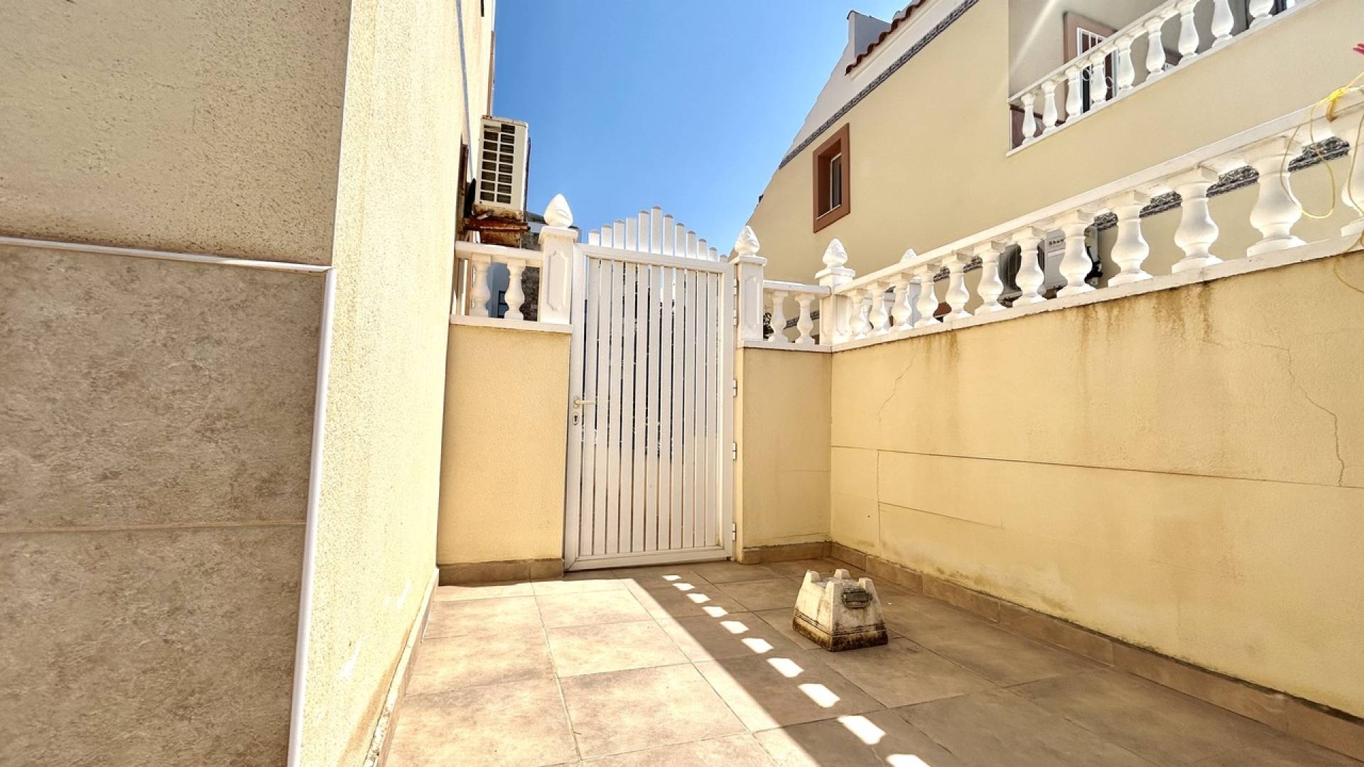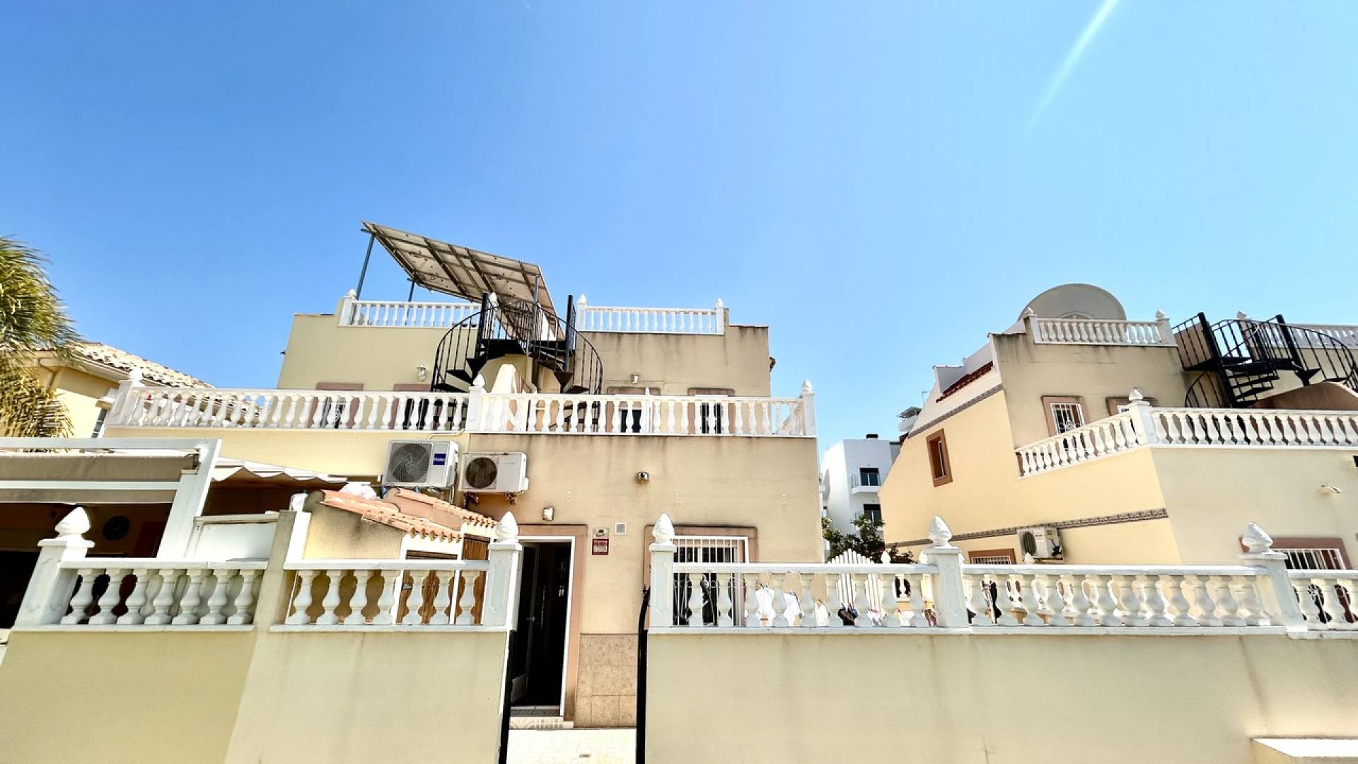 Discover this charming 3-bedroom, 2-bathroom semi-detached townhouse ideally located within walking distance of La Zenia Boulevard, offering the perfect blend of convenience, comfort, and Mediterranean outdoor living.At the front of the property, a sun-drenched private garden provides ample space not only for relaxing but also for secure off-road parking. To the rear, a spacious terrace opens directly onto the beautifully maintained communal pool area, creating a seamless indoor-outdoor lifestyle perfect for entertaining, sunbathing, or enjoying family time.The ground floor features a bright and welcoming living and dining area, a fully equipped kitchen, and a convenient double bedroom, ideal for guests or single-level living.Upstairs, you’ll find two generous bedrooms, each with its own private terrace, offering peaceful spots to enjoy morning coffee or evening sunsets. One of the terraces provides access to a private solarium, delivering additional outdoor space and panoramic views—perfect for soaking up the year-round sunshine. A well-appointed bathroom serves this level.Whether you’re searching for a permanent residence, holiday retreat, or investment property, this home offers an unbeatable location, fantastic outdoor spaces, and direct access to communal amenities—all just moments from shops, restaurants, and beaches.