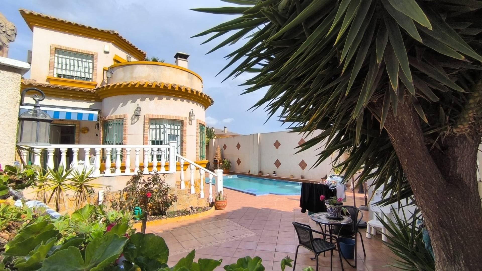 Detached Villa with Private Pool in El Raso, Guardamar del SeguraThis well-maintained detached villa is located in the popular residential area of El Raso, Guardamar del Segura, offering comfortable living in a quiet and friendly neighbourhood. The property features three bedrooms and two bathrooms, making it ideal for both permanent living and holiday use.The villa sits on a 357 m² garden plot with a south-facing orientation, ensuring plenty of natural light throughout the day. The outdoor space includes a private heated swimming pool with a jacuzzi area and outdoor shower, a garden shed, and a covered carport. The pool also benefits from a protective cover for added convenience. Additional outdoor areas include a 14.82 m² terrace and a 20.43 m² rooftop solarium, providing pleasant spaces to relax and enjoy the Mediterranean climate.Inside, the home offers a bright and comfortable living area with an open fireplace, a fully equipped kitchen, and three well-sized bedrooms. The property has been recently painted and includes practical features such as solar water heating via tubes and a new boiler, helping to improve energy efficiency.The villa is located close to everyday amenities including shops, restaurants, bars, and a pharmacy, and there is a dog park nearby for pet owners. It is also just a 15-minute walk from the well-known Sunday Lemon Tree Market, with the popular Wednesday market in Guardamar only a short drive away.About the Area El Raso is a well-established residential area located just a few minutes from the beaches of Guardamar del Segura, known for its long sandy coastline and natural parks. The area offers a relaxed lifestyle with excellent access to services, restaurants, and outdoor activities. Several golf courses are located nearby, making it a popular destination for golf enthusiasts. Alicante airport is also within easy reach, making this an ideal location for both permanent living and holiday homes.We have a large portfolio of properties in the Costa Blanca and Costa Calida areas, specialising in country properties, villas, fincas, building plots and design and build options in the Alicante and Murcia regions. We are now expanding to cover the coastal towns of Denia, Javea, Moraira, Calpe, Altea, Benidorm and many more surrounding areas. We have been established since 2004 and have decades of experience between the team which we bring to bear to help you find and secure your new dream home. We help you every step of the way to make sure your purchase in Spain is safe and hassle free. We are not here to sell you a property, we are here to help you realise your dream and find what is right for you. With us you are in the safest hands. Contact us now to have a no obligation chat about how you too can realise your dreams.