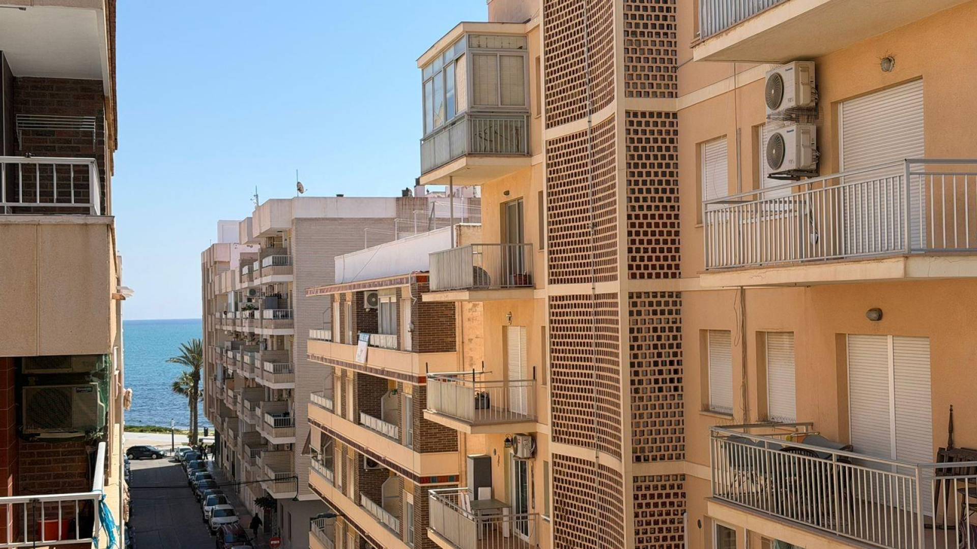 Spacious 3-bedroom apartment with terrace on the beachfront of Playa del Cura in Torrevieja This bright three-bedroom, two-bathroom apartment, one of which is en suite, is located in a quiet building just 100 metres from the sea. The living room opens onto a large terrace with spectacular sea views, making it the perfect spot for gatherings with friends, al fresco dining or simply relaxing as you gaze out at the blue horizon. The fully equipped kitchen has its own balcony. The three bedrooms are well laid out and receive plenty of natural light. The master bedroom, with en-suite bathroom, provides a touch of privacy and comfort. The second bathroom, fully equipped, serves the rest of the bedrooms and guests. This flat not only offers functional and modern spaces, but also the advantage of its privileged location: just a few steps from the beach, allowing you to enjoy the sea at any time of day without having to travel by car. IMPORTANT: There is wheelchair access. LOCATION: Torrevieja is in the province of Alicante (Costa Blanca). It is famous for its Mediterranean climate and its coast. We cannot forget its promenades where we can find some restaurants along the fine sandy beaches. It also has many excellent beaches such as Playa de los Náufragos, Playa de los Locos and Playa de la Mata. Therefore, it is considered a remarkable tourist town where the environment takes an important place as an important tourist attraction. In addition, we can find many shopping centres (Habaneras, La Zenia Boulevard), golf courses, sport centres, hospitals (such as Hospital Universitario de Torrevieja) and airports such as Alicante Airport (35 km away) and Region of Murcia International Airport (43 km away). DISTANCE TO THE SEA: 50m COMUNITY: 416 €. IBI: 375 €. Should you have any question do not hesitate to contact us!