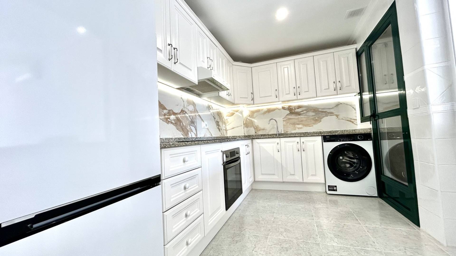 This beautifully fully renovated 2-bedroom, 2-bathroom ground floor apartment is located in the sought-after Campoamor Golf area and offers the perfect blend of modern comfort, outdoor living, and convenience.Facing south, the property enjoys sunshine throughout the day, which can be appreciated from the spacious private terrace, complete with a retractable awning—ideal for relaxing, dining al fresco, or entertaining guests while staying cool in the summer months.The apartment has been renovated to the highest standards, featuring a contemporary design, quality finishes, and a move-in-ready feel that makes it perfect as a permanent residence, holiday home, or rental investment.Residents benefit from access to a well-maintained communal pool and landscaped gardens, creating a peaceful resort-style atmosphere.The location is exceptionally convenient:Walking distance to La Fuente Commercial Centre, with its wide selection of restaurants, cafés, and bars Close to Mercadona and other everyday amenities Just a 10-minute drive to Cabo Roig beach, where you can enjoy golden sands and crystal-clear Mediterranean waters This property offers an unbeatable combination of sunny orientation, modern renovation, outdoor space, and a prime location in one of the most desirable areas of the Costa Blanca.