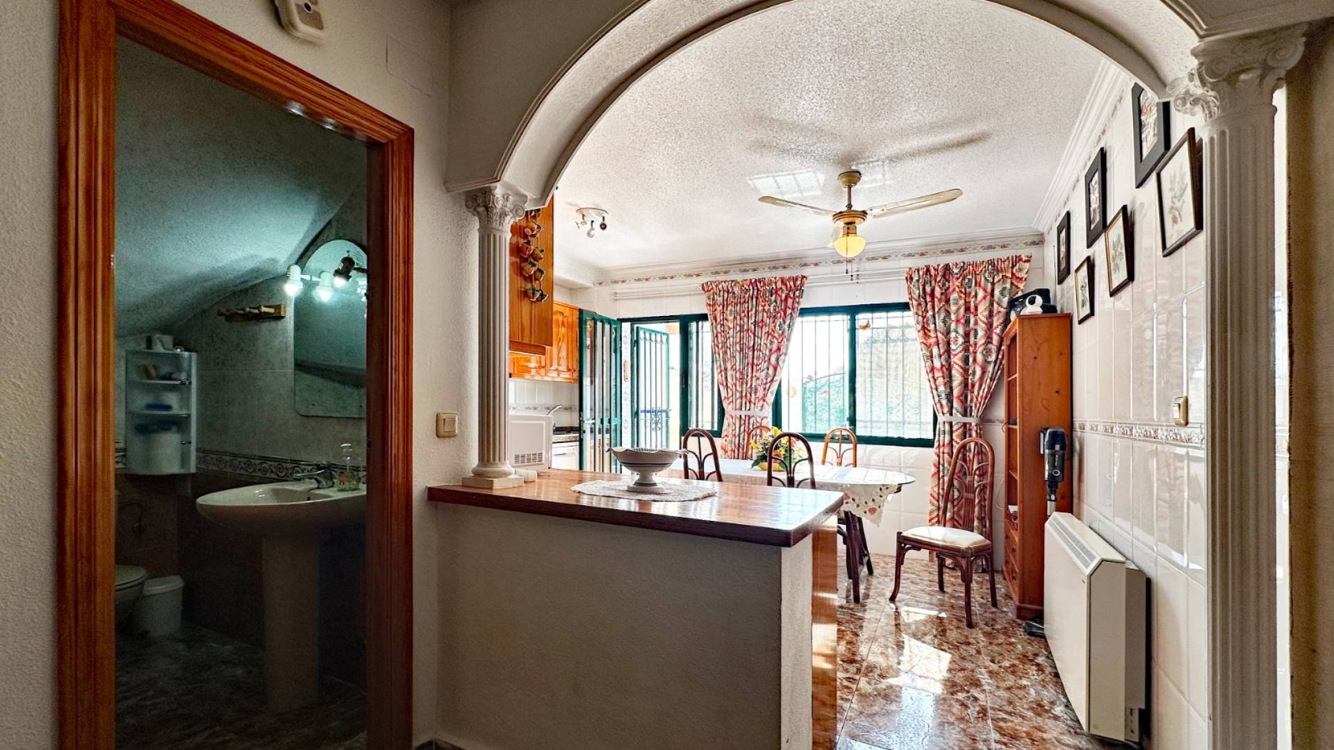 We are delighted to present a stunning three-bedroom property in La Zenia (beachside). This property is conveniently located just 700 metres from the beachfront, offering an unparalleled beach access. This attractive, terraced house combines a generous amount of space, a high level of comfort and a location in close proximity to the coast. It represents an ideal choice for those seeking a serene yet practical lifestyle on the Orihuela Costa. Interior: This property is 100 m² in size and is comprised of three bedrooms and two bathrooms. It offers ample living space for families or those seeking extra room for guests. The property has one bathroom, equipped with a bathtub, and the ground floor features a practical WC, offering added convenience. Living Room: The property boasts a generously proportioned living room, which serves as a comfortable area in which to relax and entertain, with natural light flooding in from the front terrace. Kitchen: The semi-independent kitchen, which is fully equipped, has an integrated dining area and offers access to the rear garden/patio, which is ideal for additional outdoor storage or as a quiet retreat. Outdoor Space: The property boasts a front terrace, ideal for al fresco dining or relaxation. The property also features a spacious back garden and private parking within the gated community, as well as access to a large communal swimming pool. The property includes an enclosed solarium, making it an ideal location for relaxation and entertainment, as well as a practical fourth bedroom. Orientation: south-east-facing, ensuring a sunny, comfortable environment throughout the day. Furnished: The property is sold furnished, ready for immediate occupation. Location: The property is conveniently located within a short walking distance of a variety of local amenities, including supermarkets, banks, pharmacies, and an array of bars, restaurants, and bus lines. This duplex offers an ideal combination of convenience and relaxation in a prime location near the sea, making it an excellent investment for anyone seeking a coastal lifestyle. This is an excellent opportunity to purchase a high-quality property in one of the most sought-after areas on the Costa Blanca. We encourage you to schedule a viewing as soon as possible to avoid disappointment.