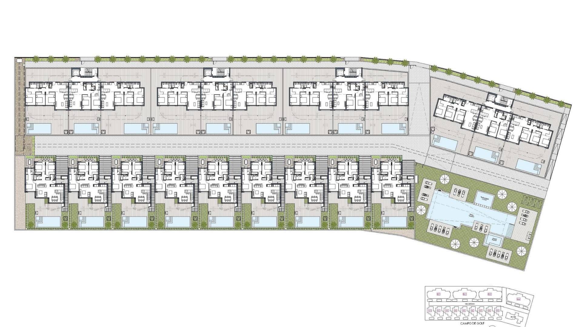 New Build Golf Front Apartments and Villas in La Serena Golf Los Alcazares Exclusive Residential Development Frontline to La Serena Golf Discover this exceptional new build residential development located frontline to La Serena Golf in Los Alcazares, one of the most desirable coastal towns on the Costa Calida. This exclusive community offers a premium lifestyle surrounded by nature, open views and direct access to a renowned 18 hole golf course known for its flat terrain, scenic lakes and technical challenges. Ideally situated just 1.7 km from the beaches of the Mar Menor and the town center, residents can enjoy both tranquility and easy access to restaurants, shops and all essential services. Los Alcazares is well known for its relaxed atmosphere, long promenades and warm shallow waters, making it perfect for year round living or holiday stays. Modern Apartments with Terraces and Private Solariums The development includes 36 contemporary apartments distributed across four blocks. Buyers can choose between two or three bedroom layouts with two bathrooms, including an en suite. Ground floor apartments feature spacious terraces with the option to add a private pool. Middle floor units offer generous outdoor terraces, while penthouses include private solariums ideal for sunbathing and outdoor dining. All apartments include underground parking and a storage room with elevator access. The community also offers beautifully landscaped Mediterranean gardens and a large communal swimming pool for residents to enjoy. Stylish Single Level Villas with Private Pool In addition to the apartments, the development offers nine exclusive single level villas. These homes feature three bedrooms, two bathrooms and an additional guest toilet, all designed to provide seamless indoor and outdoor living. Each villa includes a private swimming pool, garden, storage room and private parking. A spacious open basement provides additional flexible space that can be adapted to suit individual needs such as a gym, entertainment area or extra storage. High Quality Finishes and Energy Efficient Design All properties are built with high quality materials and modern specifications. Features include aluminum exterior carpentry with thermal break, fully equipped bathrooms with vanity units and glass shower screens, and pre installation for ducted air conditioning and furnished kitchens in apartments. Villas come with fully installed air conditioning systems and fully equipped kitchens with appliances. Elevators are available in apartment blocks, ensuring comfort and accessibility. Prime Location Close to Golf, Beaches and Amenities This development offers excellent connectivity to key points of interest. Murcia International Airport is 35 km away and Alicante Airport is 95 km. The marina of Los Alcazares is just 2 km away, Dos Mares shopping center is 15 km and Roda Golf is only 4 km from the development. Cartagena city center is located 25 km away. Ideal Investment and Mediterranean Lifestyle Opportunity This golf front development offers a unique opportunity to enjoy modern living in a privileged setting close to both the sea and golf. Contact us today to receive more information or to arrange a viewing and find your perfect home in Los Alcazares.