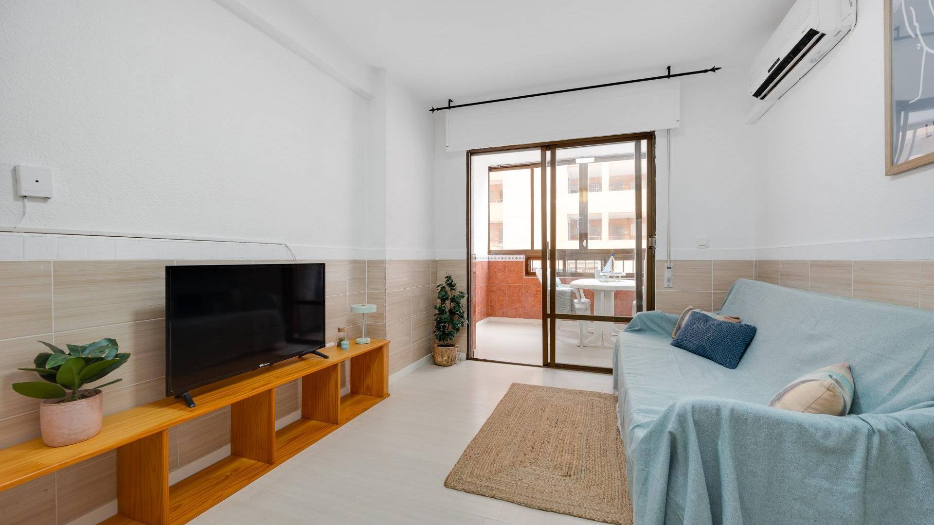 Experience the essence of the Mediterranean in this bright, nautical-style apartment, located on the second line from the beach and just a few steps from the sea. With a north-facing orientation—ideal for staying cool in summer while enjoying plenty of natural light—this property offers the perfect balance between tranquility and urban comfort. The apartment features a cozy living-dining area with an open, fully equipped kitchen. The living room opens onto an 8 m² enclosed terrace with side sea views—the perfect spot to relax all year round. It includes two bedrooms, one double and one single, and a functional bathroom with a walk-in shower. A key added value in this area is the private parking space, ensuring maximum convenience in a prime location surrounded by all amenities. Whether as a high-yield investment or your next holiday home, this apartment is a unique opportunity on the Costa Blanca.