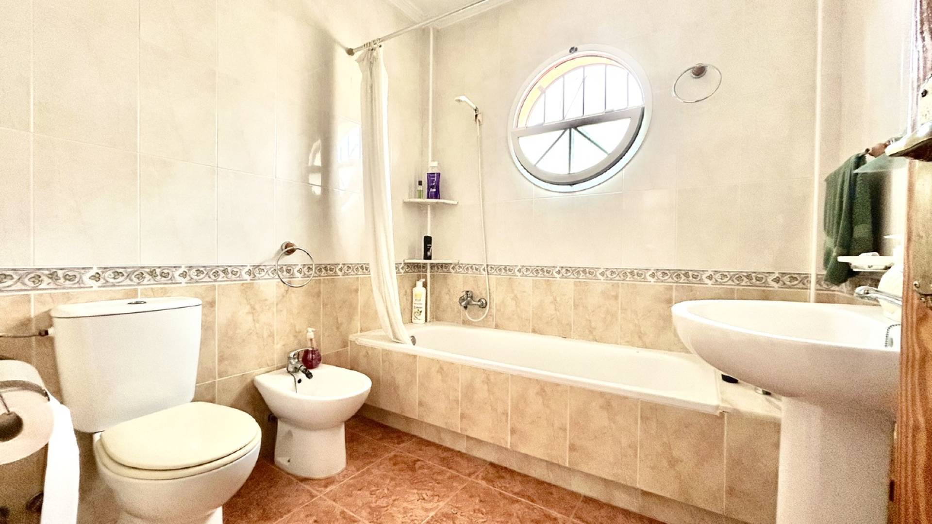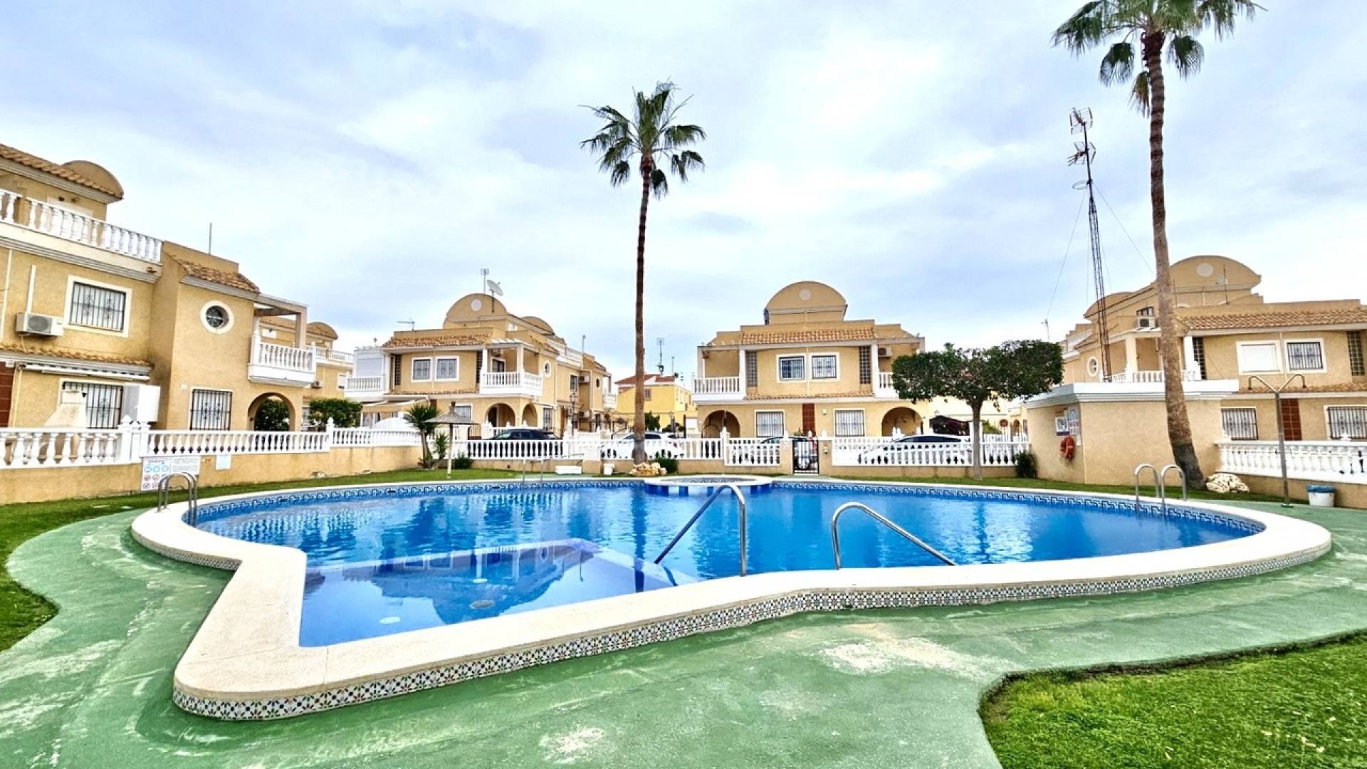 Perfectly positioned just a 5-minute walk from the vibrant Cabo Roig Strip in Cabo Roig, this spacious 3-bedroom, 1.5-bathroom home offers generous living space, a fantastic outdoor area, and superb potential in one of the Costa Blanca’s most sought-after locations.Set on a large plot, the property boasts an impressive private garden — easily big enough to add your own private swimming pool if desired. However, residents already enjoy access to a well-maintained communal pool, giving you the best of both worlds.As you enter the property, you’re welcomed into a bright and airy living and dining area, ideal for relaxing or entertaining. The layout flows naturally into a separate kitchen, offering practicality and defined living spaces. On this ground level, you’ll also find a good-sized double bedroom along with a convenient bathroom featuring a toilet and sink — perfect for guests.Upstairs, the master bedroom benefits from a large private balcony, providing a peaceful outdoor retreat. A further spacious bedroom and a full family bathroom complete this level, making it ideal for family living or visiting guests.The top floor is a real highlight of the home — a large private solarium overlooking the park. This fantastic space is perfect for sunbathing, entertaining, or simply enjoying open views and the Mediterranean climate all year round.With its generous garden, excellent outdoor spaces, and unbeatable location just moments from restaurants, bars, and the beach, this property offers an exceptional opportunity as a holiday home, rental investment, or permanent residence.