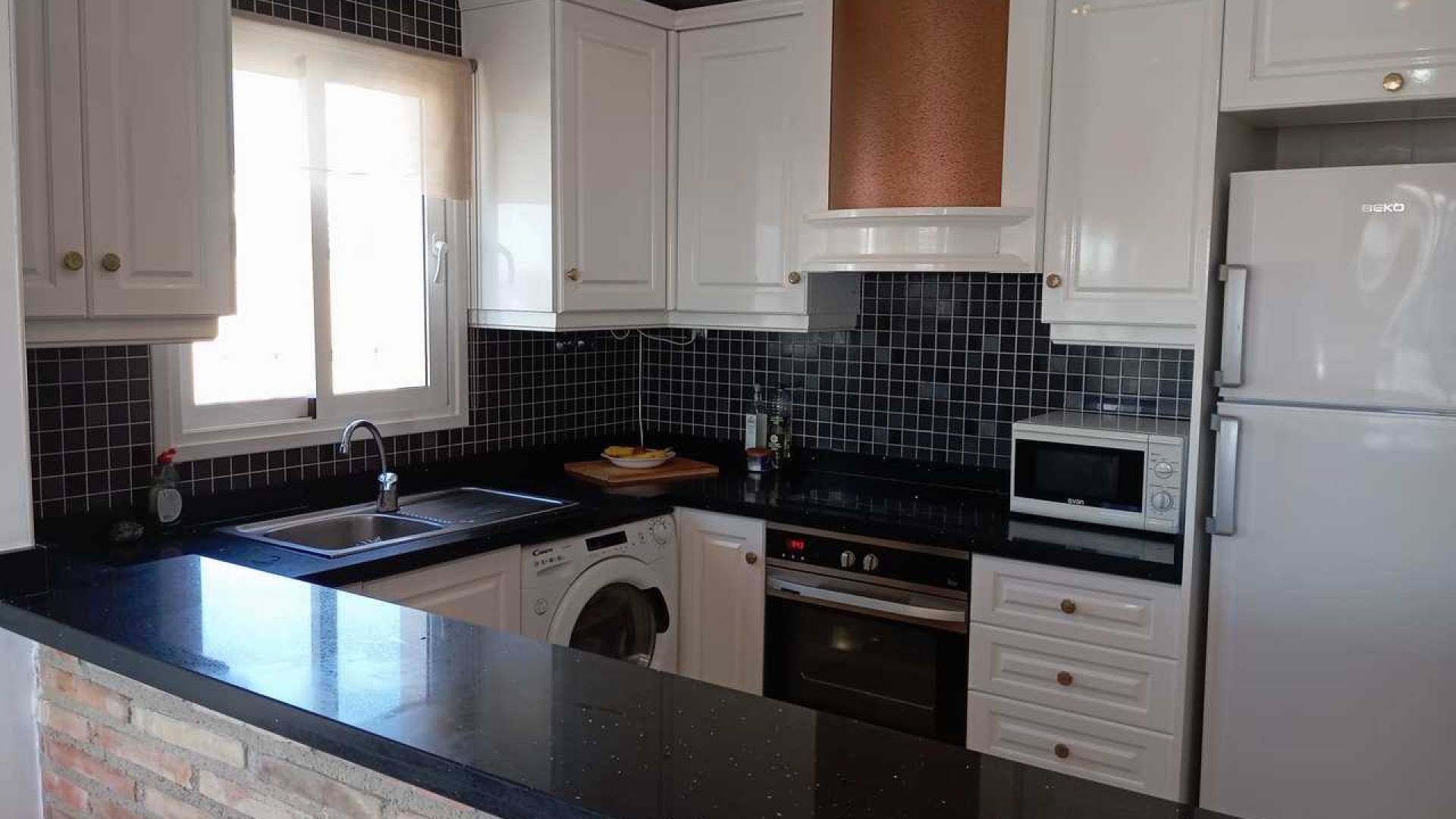 This spacious sunny 2 bedroom apartment, on the second floor, is situated in the popular area of La Fuente, Villamartin, Alicante.The property boasts a spacious living/dining room, a modern open plan kitchen, two bedrooms with fitted wardrobes, two bathrooms (one is en-suite), a large south/east facing terrace with distant sea views, and there is a communal rooftop terrace/solarium with amazing views.This is a lovely gated community with a beautiful communal garden with swimming pool and off road parking.Location, location, location because this fantastic property is within walking distance to the La Fuente commercial centre with many bars, restaurants, shops, supermarkets. Close to various golf courses and the beautiful Orihuela Costa beaches.