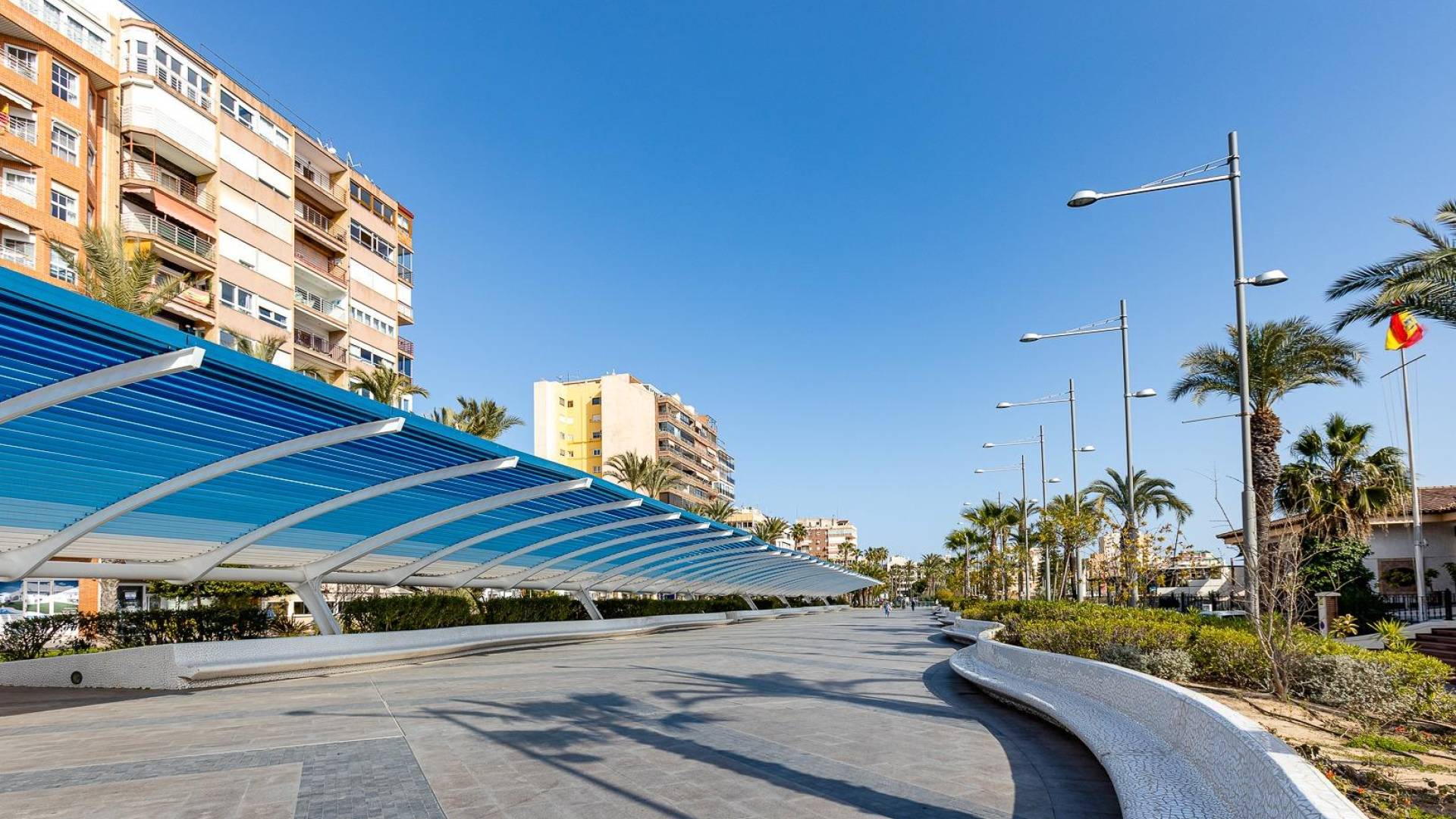 Dreaming of a comfortable home close to the sea? This bright and well-designed apartment in central Torrevieja offers everything you need for both permanent living and holiday enjoyment. The property features two spacious bedrooms, a modern bathroom, and a bright living room with access to a lovely balcony – perfect for your morning coffee or relaxing evenings. The apartment is equipped with air conditioning, ensuring a pleasant indoor climate all year round. Located in an attractive area, the building offers a communal pool where you can enjoy the sun and take a refreshing dip. With only 600 meters to the beach, the Mediterranean is always within easy reach, while restaurants, shops, and all services are just around the corner. An ideal home for those seeking a central location, proximity to the sea, and comfortable living in the sun. Legal costs and VAT are not included in the price.