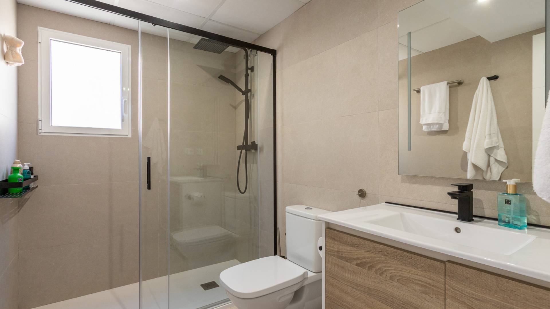 Are you looking for a modern and unique home in Torrevieja? This property in the tranquil Los Balcones area could be the home you are looking for. This spacious detached villa was completely renovated just a couple of years ago and offers all modern comforts. On the ground floor of the villa there is a spacious bedroom with a walk-in closet, an open living-dining area with a fully equipped kitchen, and a spacious bathroom with a washing machine and dryer. From the dining area you can access the chill-out area in the backyard, where you can of course enjoy the sun, barbecue, and swim in your own heated swimming pool. There is also a wood-fired sauna in the backyard. In the front yard there is parking space behind an electric gate, as well as a closed garage. Upstairs there are 3-4 bedrooms and two modern bathrooms. The master bedroom has a spacious walk-in closet, as well as a modern study, which not only has its own relaxation area with sofa and television, but also its own small kitchenette. From the master bedroom you have access to a west-facing balcony with steps down to the pool and chill-out area. On top there is a private roof terrace with pleasant artificial grass and an 11-panel solar panel system on the roof, which keeps energy costs very low. Restaurants and a supermarket just 500 meters away.Playa de los Naufragos sandy beach less than 3 km.Torrevieja city center about 5 km.Alicante airport about 45 minutes to the apartment. Property tax 592€/year, no community fees.