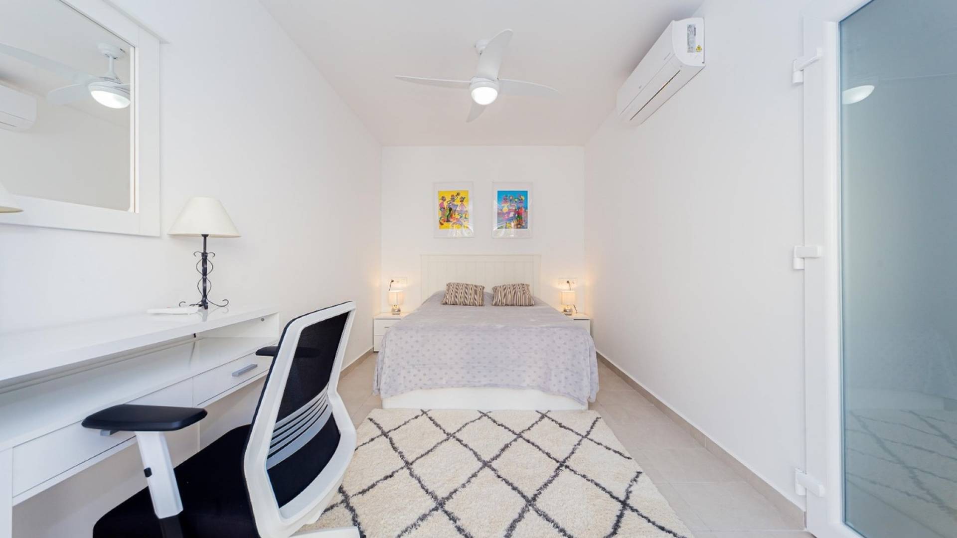 A 110 m² duplex home located in the quiet and green residential complex of Monte Mar, set within a beautiful pine park in Dehesa de Campoamor.The property is just 700 meters from the sea and the sandy shores of Playa de la Glea, accessible via a flat road with no hills. Most of the walk to the beach is shaded by tall pine trees, creating a pleasant and refreshing vibe.The home benefits from excellent air quality, allowing comfortable sleeping even on summer nights without the need for air conditioning.The property has been renovated and upgraded, including:New windows throughoutPrivate swimming pool (8m x 3m x 1.8m)Fully updated appliances (refrigerator, dishwasher, boiler, TV, air conditioning units)???? Layout:4 bedroomsLiving roomFully equipped kitchen2 bathroomsTerrace and balconyThere are multiple outdoor relaxation areas: by the pool, on the terrace, and at the entrance of the house. The property also offers lovely views of the surrounding park.