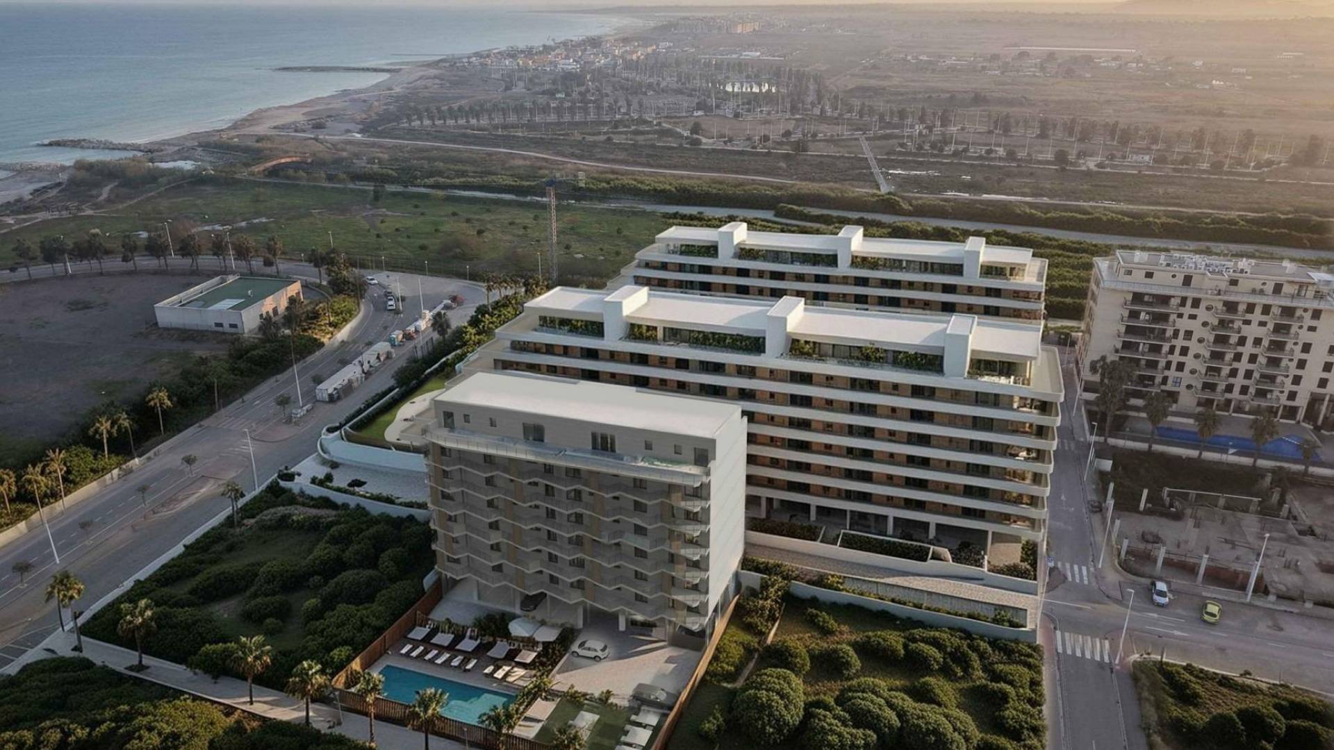 New Build Apartments for Sale in Moncofa 300 Metres from the Beach Prime Coastal Location in Moncofa Castellon Discover a modern residential development just 300 metres from the beach in Moncofa, a charming coastal town on the Costa del Azahar. Known for its relaxed atmosphere, wide sandy beaches and authentic Mediterranean lifestyle, Moncofa offers an ideal setting for both permanent living and holiday escapes. The development is within walking distance of supermarkets, restaurants, cafes and all essential daily services, allowing you to enjoy convenience without sacrificing tranquility. Its strategic location also provides easy access to larger cities such as Castellon and Valencia. Modern Apartments Designed for Comfort and Light This exclusive project consists of 40 new build apartments distributed across a contemporary 7 storey building. Buyers can choose between 2 and 3 bedroom homes with spacious terraces or one of the limited 3 bedroom penthouses featuring large private outdoor spaces. Each property has been thoughtfully designed to maximize natural light, functionality and open living areas. All homes benefit from beautiful sea views, creating a constant connection with the Mediterranean and enhancing the overall living experience. Large windows and well planned layouts ensure bright interiors and a seamless indoor outdoor flow. High Quality Finishes and Fully Equipped Homes The apartments are delivered fully furnished and ready to move in. Kitchens come equipped with appliances, while bathrooms include furniture, mirrors and shower screens. Each property also features fully installed air conditioning and an energy efficient aerothermal system for hot water, ensuring comfort throughout the year. Additionally, every home includes a private parking space and a storage room, adding practicality and value to the property. Exclusive Communal Areas and Lifestyle Residents can enjoy a well designed communal area with a swimming pool and landscaped gardens, perfect for relaxing, socializing and enjoying the Mediterranean climate. The private setting offers a peaceful environment ideal for families, couples or investors seeking a secure and attractive development near the sea. Distances to Key Points of Interest Moncofa Beach: 0.3 km Chilches Beach: 3 km Castellon city center: 30 km Valencia city: 50 km Valencia Airport: 55 km Castellon Airport: 45 km Nearest golf courses: approximately 20 km Port of Castellon: 28 km A Smart Investment or Perfect Coastal Home Whether you are looking for a permanent residence, a holiday home or a strong investment opportunity, these new build apartments in Moncofa offer modern living, sea views and an unbeatable location close to the beach. Contact us today to receive more information or to arrange a visit and secure your new home by the Mediterranean. 489