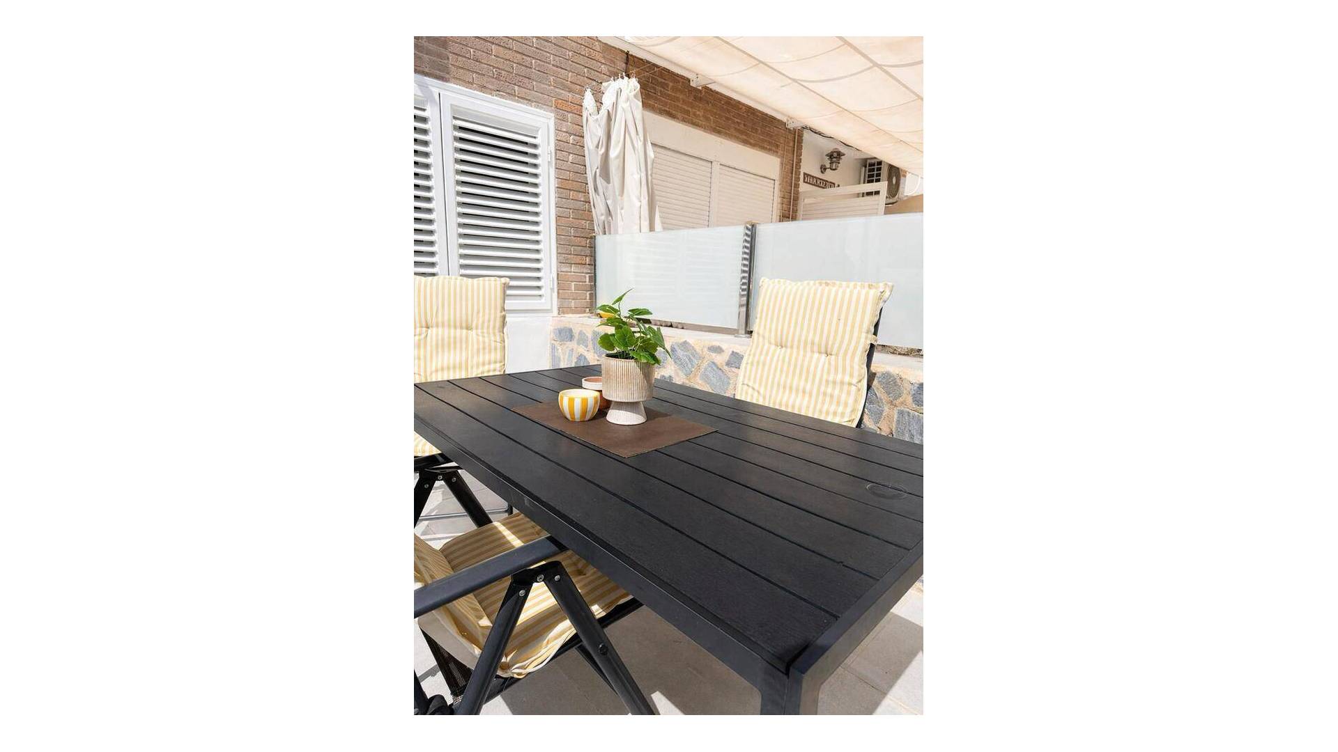 This is real usable space, not just decoration. Dining area, chill-out zone, awning, BBQ potential — basically an extra outdoor living room.