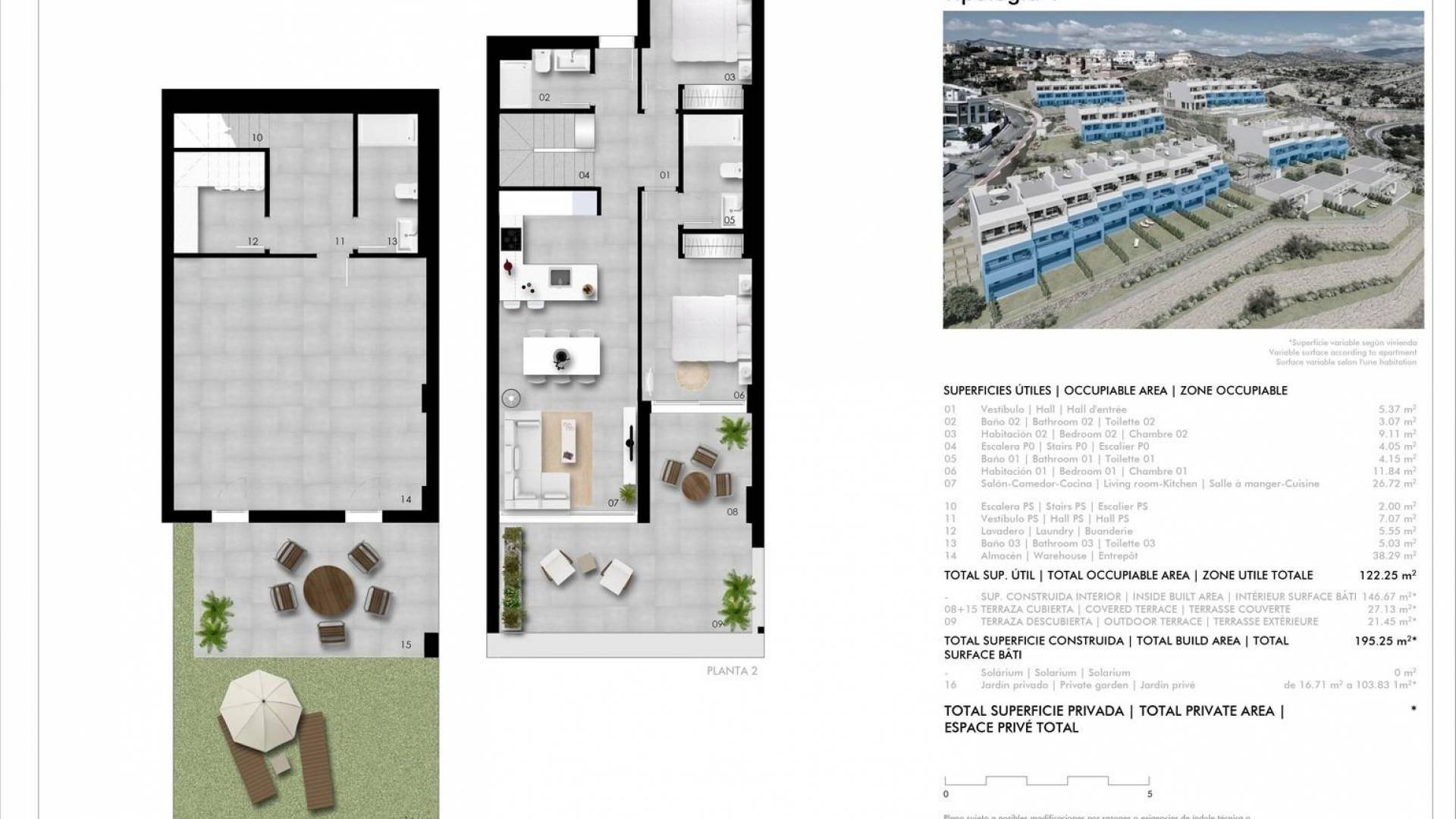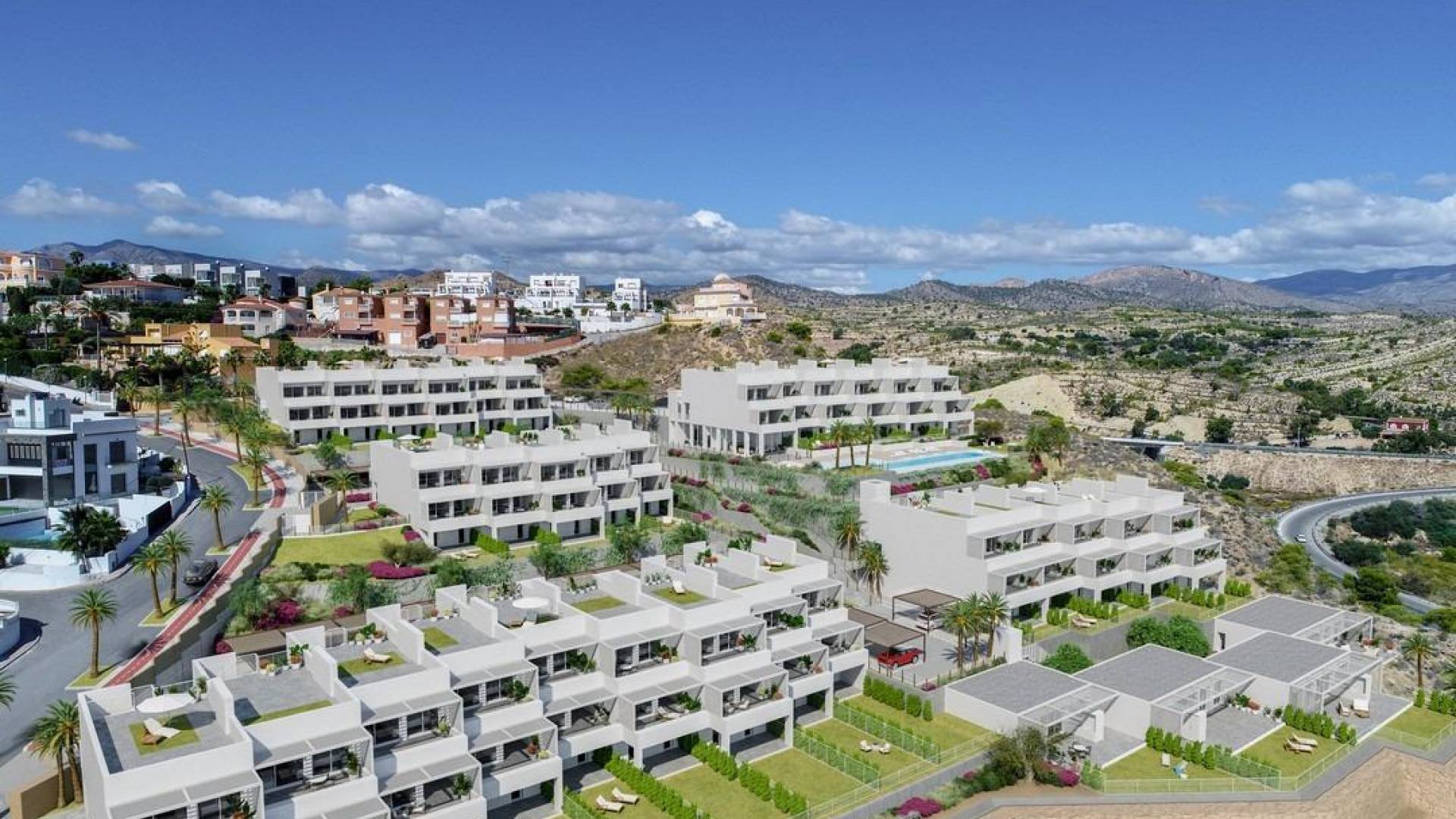 NEW BUILD RESIDENCIAL WITH SPECTACULAR SEA VIEWS IN VILLAJOYOSA LIVE BY THE SEA New Build unique residential area on the Costa Blanca due to its unbeatable panoramic views and its incredible common areas. You can take a relaxing bath throughout the year while you contemplate the Mediterranean, since its pool and jacuzzis are heated. Sports lovers will enjoy a complete gym and an enviable environment in which to practice water sports. The little ones will have a great time in their playgrounds in and out of the water. PANORAMIC VIEWS The common areas and the houses have beautiful views of the sea. Depending on the orientation and height of the house you can enjoy views of the common areas, the pool and the different beaches and coves. SPACIOUS HOUSES 3 bedrooms bungalows with large terrace and garden. Excellent qualities that include, among others, hot / cold air conditioning through ducts and underfloor heating in the bathrooms, being able to personalize your home between different finishing options. All homes include a parking space. NEXT TO THE BEACH La Cala Bolnou is in front of the residential complex, just 130 meters away. On both sides we find several more beaches, Playa Paraíso (with more than 1.060 meters long and several beach bars), Playa el Asparalló (next to cliffs of difficult access and crystal clear waters) and Cala Higuera or “La Caleta”. WITH ALL SERVICES The residential is in Villajoyosa that has all the necessary services available all year round, in addition to its charm, gastronomy and popular festivals. The city of Alicante is 15 minutes away with the airport, high-speed train, port and the most complete health, leisure and shopping services that a large city provides. 8 minutes away is the city of Benidorm with shopping centers and all tourist leisure services.