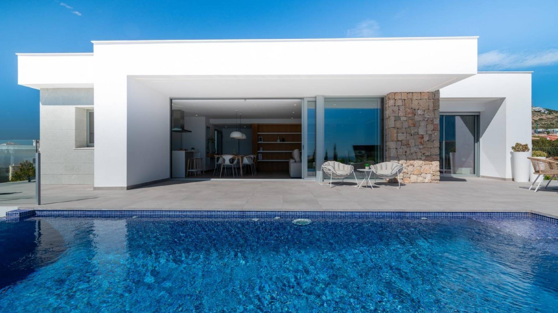 НОВАЯ ВИЛЛА КЛАССА ЛЮКС В КУМБРЕ ДЕЛЬ СОЛЬ Вилла в современном стиле, с чистым и элегантным дизайном, с распределением, ориентированным на то, чтобы море и средиземноморский свет проникали в интерьер дома, с открытыми дневными зонами, в которых кухня соединяется с гостиной-столовой, создавая непрерывную среду, ограниченную центральным островом, невероятную зону, где можно позавтракать или быстро перекусить, не теряя из виду море. Гостиная-столовая соединена с крыльцом и террасой у бассейна, создавая единое пространство, так как раздвижная стеклянная дверь, разделяющая эти две зоны, установлена с одной стороны, соединяя интерьер с экстерьером. Вилла имеет три спальни и две ванные комнаты, главная спальня очень светлая, с ванной комнатой, гардеробной и прямым выходом на главную террасу дома, где расположен бассейн инфинити. К дому прилагается сад и крытая парковка. В самой восточной точке провинции Аликанте, Испания, находится жилой курорт Кумбре дель Соль. Жители и гости курорта первыми встречают величественное солнце каждое утро, когда оно поднимается над спокойными водами Средиземного моря. С нашей эксклюзивной смотровой площадки, расположенной на самой высокой точке муниципалитета Бенитачель, Cumbre del Sol предлагает панорамный вид на море и природные парки, которые окружают нас от Хавеи до Морайры. Откройте для себя наш эксклюзивный курорт на побережье Коста Бланка и познакомьтесь с нашими замечательными первоклассными квартирами и виллами, нашими невероятными спортивными и развлекательными сооружениями и полным спектром услуг для тех, кому посчастливилось сделать Кумбре дель Соль своим домом. Вилла расположена в 65 минутах езды от аэропорта Аликанте и в 1,5 часах езды от аэропорта Валенсии.
