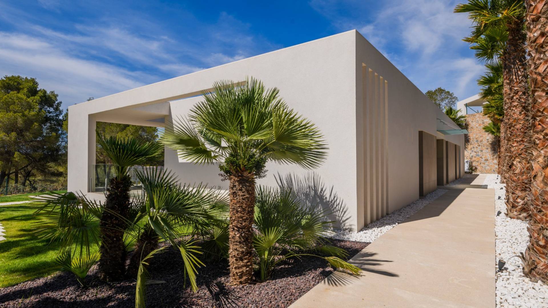 Вилла площадью 963 кв. м представляет собой архитектурный шедевр, основанный на чистых и изысканных призматических геометрических формах. Ее основное размещение на одном этаже обеспечивает идеальную связь между интерьером и экстерьером, создавая просторную и функциональную обстановку, отражающую средиземноморский стиль жизни.