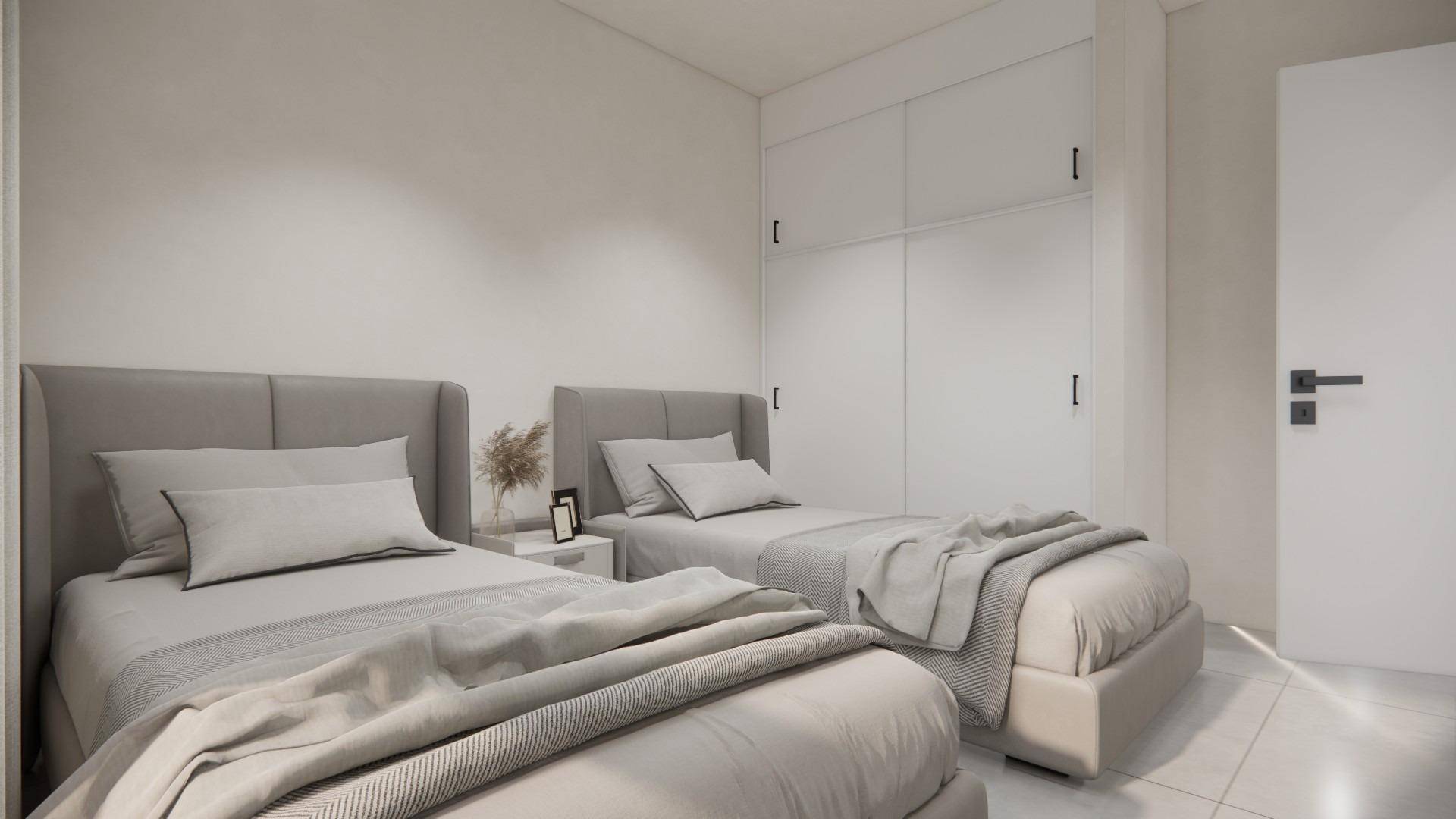 Современные новые виллы в Ла-Эррада, Лос-Монтесинос, с частным бассейном Эксклюзивный жилой проект в спокойной обстановке Расположенный в престижной урбанизации Ла-Эррада в Лос-Монтесинос, этот эксклюзивный комплекс из 16 современных вилл предлагает уединение, комфорт и отличное качество жизни. Ла-Эррада известна своей спокойной жилой атмосферой, близостью к повседневным услугам и привилегированным расположением между знаменитыми солеными озерами Торревьеха и Ла-Мата. Это идеальное место для тех, кто ищет спокойный и здоровый средиземноморский образ жизни на юге Коста-Бланки. Современный дизайн с оптимизированными внутренними пространствами Каждая вилла имеет 110 м² хорошо спланированной жилой площади, распределенной на двух этажах, спроектированных для максимального использования естественного освещения и функциональности. Построенные на участках площадью от 185 м², виллы предлагают просторные открытые площадки, идеально подходящие для принятия солнечных ванн, развлечений или отдыха у частного бассейна. Удобная планировка на двух этажах На первом этаже находится открытая гостиная с полностью интегрированной кухней и прямым выходом в сад и к бассейну. На этом же этаже расположена одна спальня, полностью оборудованная ванная комната и удобная прачечная. На верхнем этаже расположены две просторные спальни, каждая с собственной ванной комнатой, одна из которых является ванной комнатой в спальне. Обе спальни имеют выход на частную открытую террасу площадью 17 м². Для тех, кто хочет еще больше открытого пространства, за дополнительную плату можно заказать солярий на крыше. Высококачественная отделка и современные удобства Виллы включают в себя высококачественную отделку, такую как мебель для ванных комнат, зеркала, душевые перегородки и полы с подогревом во всех ванных комнатах. Есть предварительная установка для канального кондиционирования, автоматические ворота для въезда автомобилей, частная парковка на участке и закрытый доступ к жилому комплексу через частную внутреннюю улицу. Выгодное расположение рядом с основными удобствами и достопримечательностями Пляжи Гуардамар и Торревьеха 9 км Гольф-клубы La Marquesa Golf, La Finca Golf и Vistabella Golf в пределах 5 км Аэропорт Аликанте 29 км Природные парки, соленые озера, велосипедные маршруты и пешеходные тропы поблизости Живите комфортно в самом сердце Коста-Бланки Эти новые виллы в Лос-Монтесинос предлагают идеальное сочетание современного комфорта, природного окружения и отличной доступности. Если вы ищете постоянное место жительства или дом для отдыха, этот комплекс предоставляет все необходимое, чтобы наслаждаться спокойной и удобной средиземноморской жизнью. Свяжитесь с нами сегодня, чтобы договориться о просмотре и обеспечить себе новый дом в Ла-Эррада.