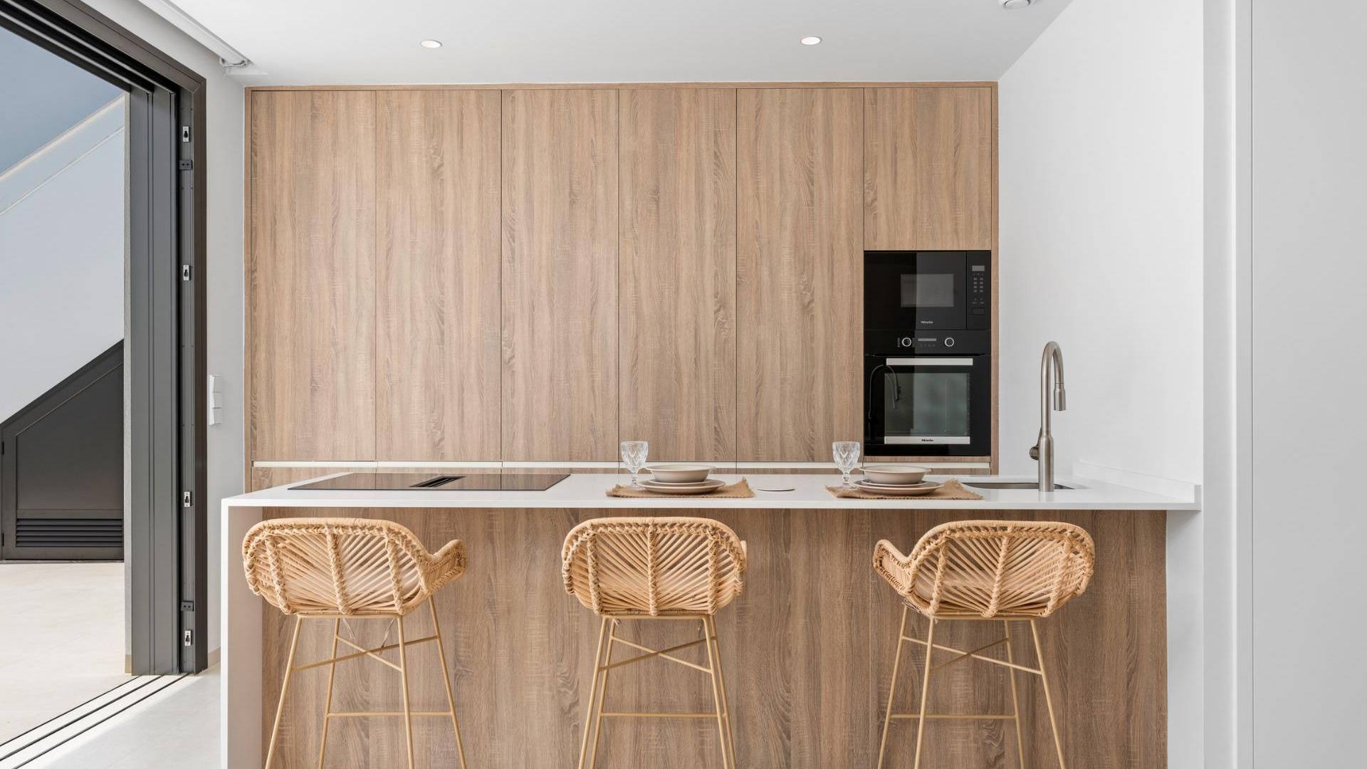 Новые виллы рядом с гольф-клубом Serena в Лос-Алькасарес Современные виллы в престижном прибрежном районе с гольф-клубом Этот эксклюзивный проект нового жилого комплекса предлагает современные виллы в Лос-Алькасарес, недалеко от престижного гольф-клуба Serena и всего в 1,2 км от песчаных пляжей Мар-Менор. Расположенные в одном из самых привлекательных районов региона Мурсия, эти дома сочетают в себе современный дизайн, комфорт и отличное расположение недалеко от моря, гольфа и всех повседневных удобств. Лос-Алькасарес - это хорошо известный прибрежный город, славящийся своим спокойным образом жизни, длинной набережной, водными видами спорта и мягким климатом в течение всего года. Одноуровневая планировка с частными открытыми пространствами Комплекс состоит из стильных вилл с 3 спальнями и 2 ванными комнатами, доступных в двух различных размерах: около 106 кв. м и 130 кв. м. Более крупная модель также включает дополнительный гостевой туалет. Все виллы спроектированы на одном этаже, что обеспечивает практичное и комфортное проживание. Открытая кухня, столовая и гостиная зоны напрямую соединяются с террасой и частным садом с бассейном, создавая идеальное пространство для проживания как внутри, так и снаружи. Каждая вилла также имеет частный солярий и парковку на участке. Высококачественная отделка и современное оборудование Эти виллы построены из высококачественных материалов и оснащены современными удобствами. Полностью оборудованные кухни доступны в белом глянцевом или деревянном исполнении и включают кварцевые столешницы, раковину из нержавеющей стали, индукционную плиту со встроенной вытяжкой, духовку, микроволновую печь, стиральную машину, встроенный холодильник и посудомоечную машину. Ванные комнаты оснащены мебелью, зеркалами, освещением и электрическими полотенцесушителями. Дополнительные функции включают электрические жалюзи в спальнях, светодиодное освещение по всей вилле и полную систему канального кондиционирования Fujitsu. Частный бассейн и энергоэффективный комфорт Каждая вилла имеет частный бассейн, отделанный синей керамической плиткой, со встроенными ступеньками и белым светодиодным освещением. Бассейн подготовлен для установки теплового насоса. Сочетание эффективного климат-контроля, современного строительства и продуманного дизайна обеспечивает комфорт круглый год. Отличная транспортная доступность и ключевые расстояния Виллы находятся в нескольких минутах ходьбы от центра города Лос-Алькасарес и в непосредственной близости от гольф-клуба Serena Golf. Пляж находится примерно в 1,2 км. Город Картахена находится примерно в 20 км и предлагает богатую культурную и гастрономическую жизнь. Международный аэропорт Мурсия Корвера находится примерно в 22 км, а аэропорт Аликанте — примерно в 90 км. Недалеко также находятся несколько полей для гольфа и пристани для яхт, что делает это место идеальным как для постоянного проживания, так и для отдыха. Ваш идеальный дом у моря и поля для гольфа Если вы ищете современную виллу новой постройки недалеко от пляжа и поля для гольфа в Лос-Алькасаресе, свяжитесь с нами сегодня, чтобы получить дополнительную информацию или договориться о частном просмотре.