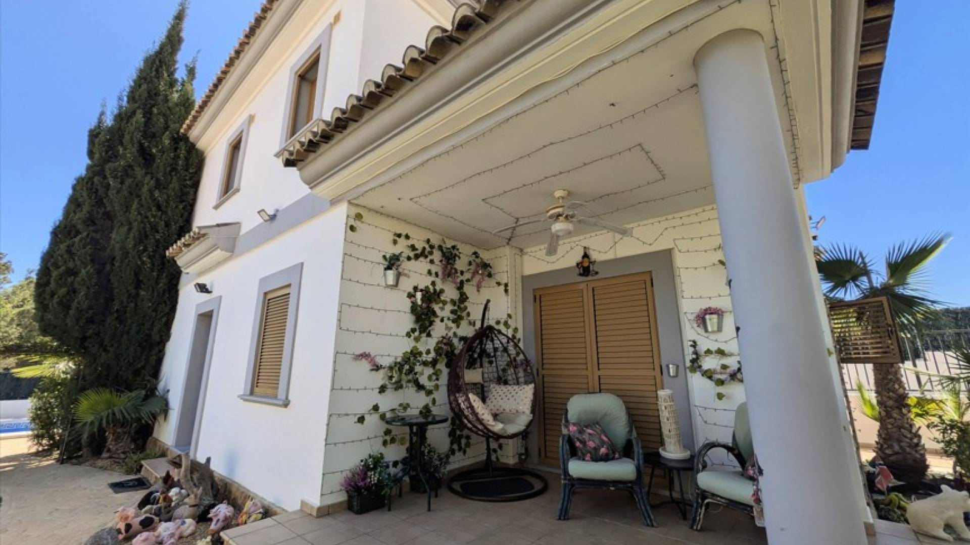 В эксклюзивном районе Сьерра Кортина вас ждет дом, который выделяется не только своей красотой, но и качеством жизни, которое он предлагает. Построенный в 2008 году и тщательно ухоженный с тех пор, этот двухэтажный объект представляет собой уникальную возможность для тех, кто ищет роскошный дом с уютной атмосферой.Переступив порог, вас встречает светлая и гармоничная атмосфера. Сад, окружающий дом, — настоящий оазис: летом цветут розы, а жасмин наполняет воздух утонченным ароматом. Вдалеке можно увидеть море, а успокаивающий звук воды из прудика с рыбками, расположенного рядом с гостевой спальней, приглашает вас отключиться от мира.Интерьер дома не менее впечатляющ, чем его внешний вид. Всего в доме три спальни; две из них с ванными комнатами, что обеспечивает максимальную уединенность и комфорт. Четыре ванные комнаты гарантируют, что всегда будет достаточно места для семьи и гостей. Кроме того во дворе имеется кладовка, которая может быть преобразована в мастерскую или творческое пространство, добавляя еще больше возможностей.Крытая терраса, защищенная от солнца, дождя и ветра, становится идеальным местом для того, чтобы насладиться едой на свежем воздухе или просто расслабиться, наблюдая за закатом. А когда наступит летняя жара, частный бассейн станет вашим идеальным убежищем.С завидным местоположением и ценой, ниже рыночной, этот дом не только прекрасное место для жизни, но и отличная инвестиционная возможность.Жизнь в Сьерра Кортине — это не просто дом, это наслаждение эксклюзивным образом жизни, окруженным природой, тишиной и видами на море. Если вы ищете место, где комфорт сочетается с красотой и хорошим вкусом, этот дом — то, что вы искали.Не упустите возможность увидеть его. Запланируйте свой визит уже сегодня.