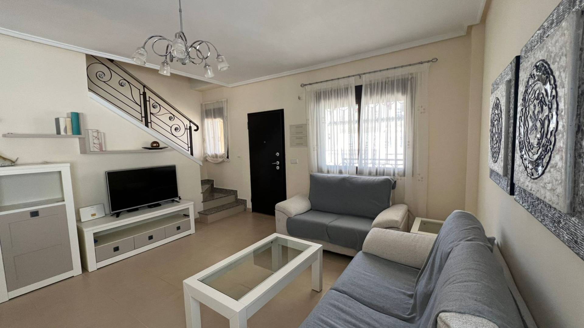 Продается таунхаус с тремя спальнями в Ciudad Quesada. Двухэтажный односемейный дом, дуплексного типа. В доме есть три спальни, две ванные комнаты, гостиная, отдельная кухняПервый этаж: гостиная, отдельная кухня, спальня, туалет с душем.Второй этаж: две спальни с ванной комнатой.Площадь постройки: 105.42лощадь застройки на первом этаже составляет 61 м2, общая площадь застройки — 105,42 м2, а также имеется сад площадью 120 м2.Отдельный гараж на одну частную машину с закрывающейся дверью.В жилом комплексе есть общественный бассейн.Возможно онлайн резервирование, а также покупка в рассрочку от застройщика и в кредит от банка под 3-6% годовых