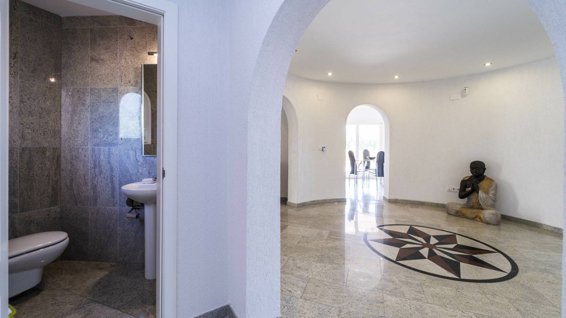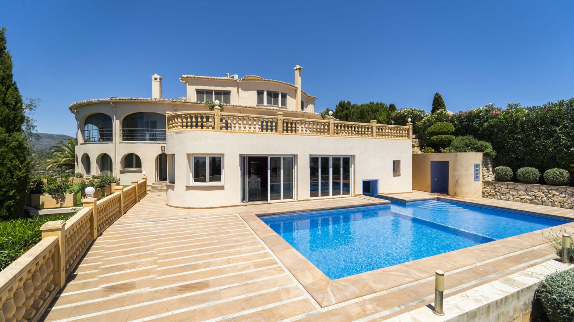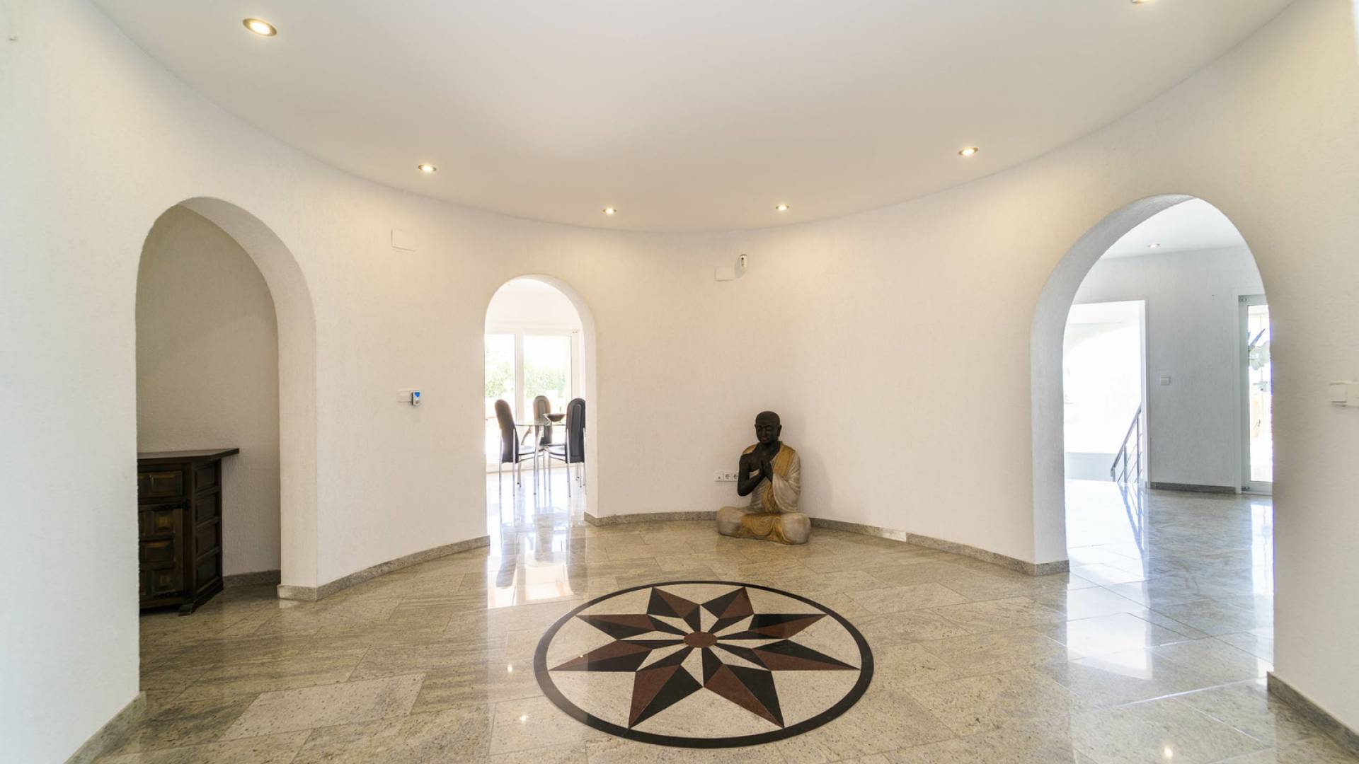 Эта великолепная вилла, построенная на участке площадью 2600 м2, расположена на трех этажах следующим образом: на первом этаже есть 2 спальни с итальянской дизайнерской мебелью, две ванные комнаты с душем и ванной с гидромассажем, гардеробные, кухню с барной стойкой, кладовую. Комната и зона отдыха с джакузи, гидромассажем, сауной. Из этой зоны вы можете напрямую получить доступ к бассейну. На первом этаже есть отдельные апартаменты с кухней, ванная комната с гидромассажем, туалет, прачечная, большая кухня, столовая, гостиная с камином, кладовая и огромная терраса. Этот этаж соединяется с площадкой для барбекю. Отсюда открывается прекрасный вид на море, горы и город Кальпе.На втором этаже находятся три большие спальни со встроенными шкафами, ванная комната, большая терраса и прачечная. Вся отделка высочайшего качества, кондиционеры Daikin во всех комнатах, окна с защитным стеклом Weru, полы с подогревом, сигнализация, интернет, спутниковое телевидение, автоматические жалюзи, видеодомофон. Вилла имеет водную и шумоизоляцию. Есть два гаража на три машины и кладовая. В доме есть водонагреватель на 300 литров. Пол внутри дома выполнен из индийского гранита, а снаружи дома из натурального камня. В бассейне установлена система фильтрации воды с солью и ультрафиолетовыми лучами. Зоны с датчиками света внутри и снаружи дома. Он расположен всего в 5 минутах езды на машине от города и прекрасных пляжей.Покупая недвижимость в Испании, можно оформить вид на жительство в Испании. Наша компания помогает оформить ВНЖ любого типа.