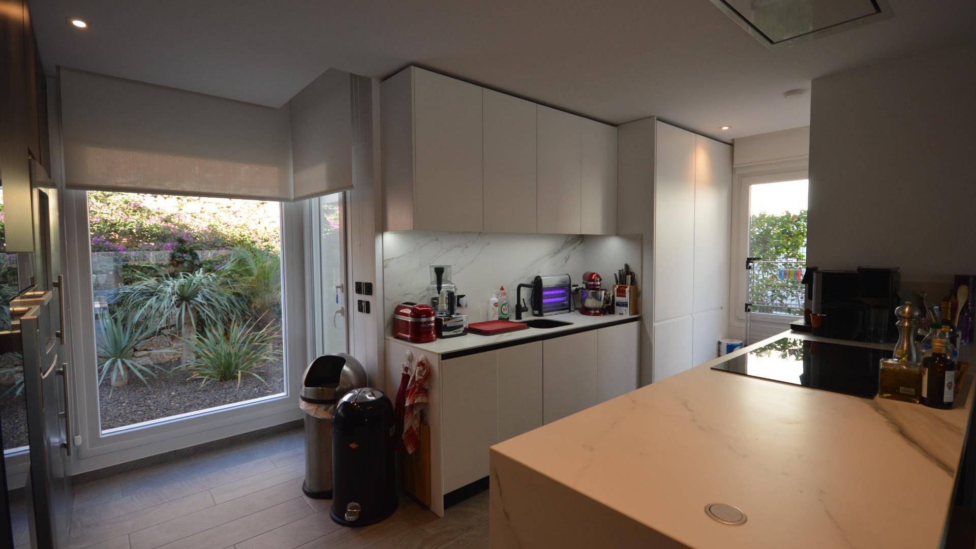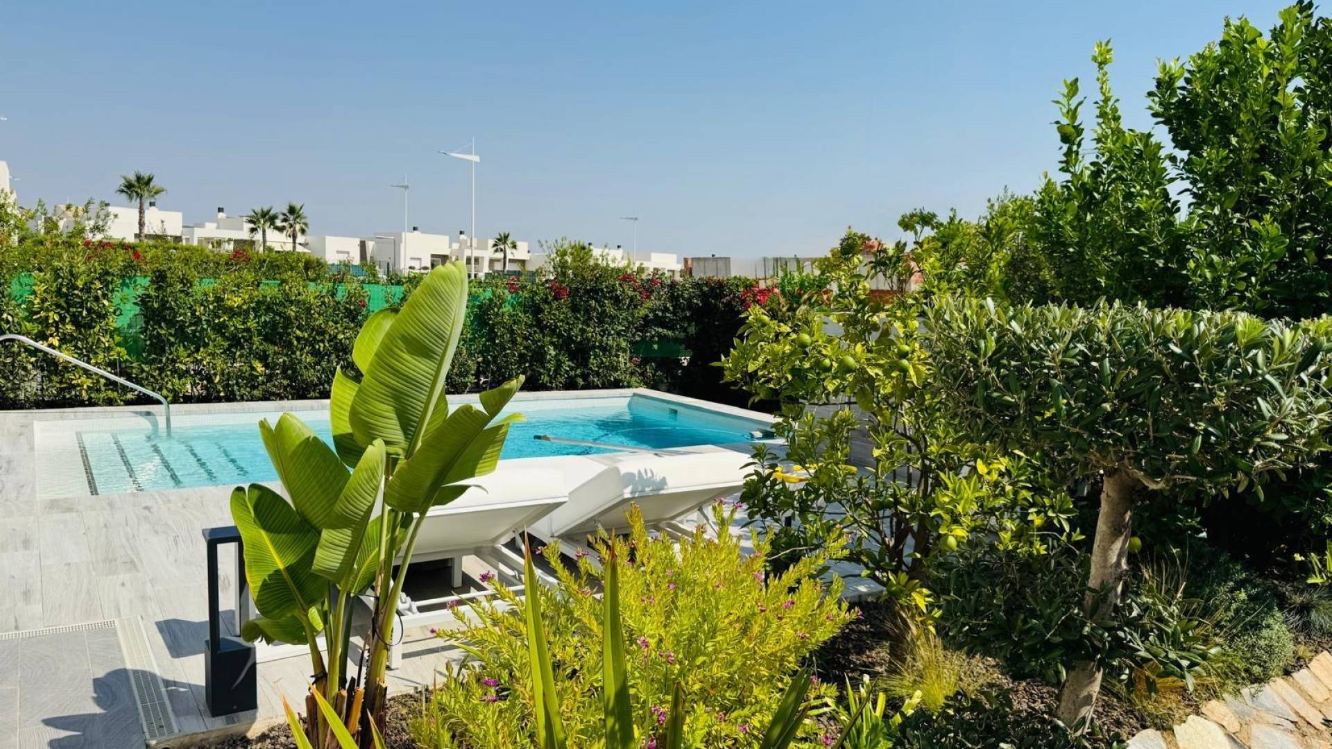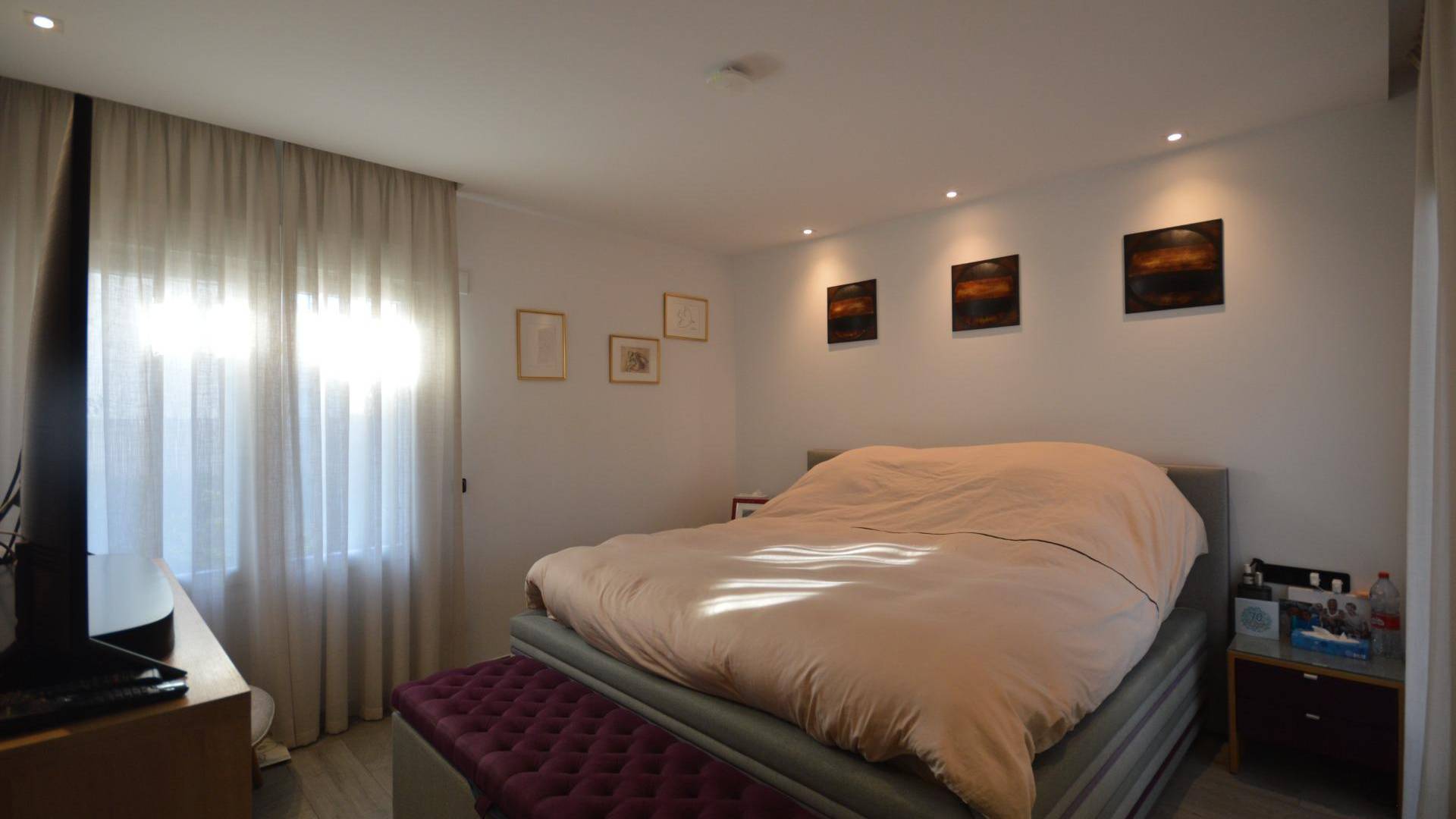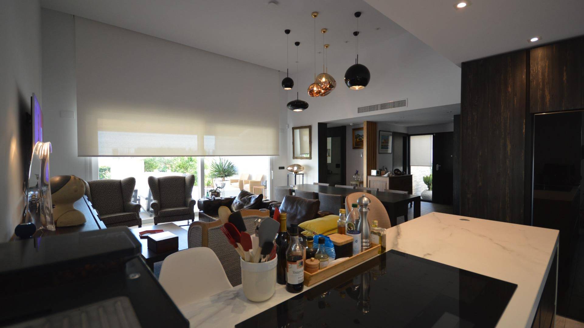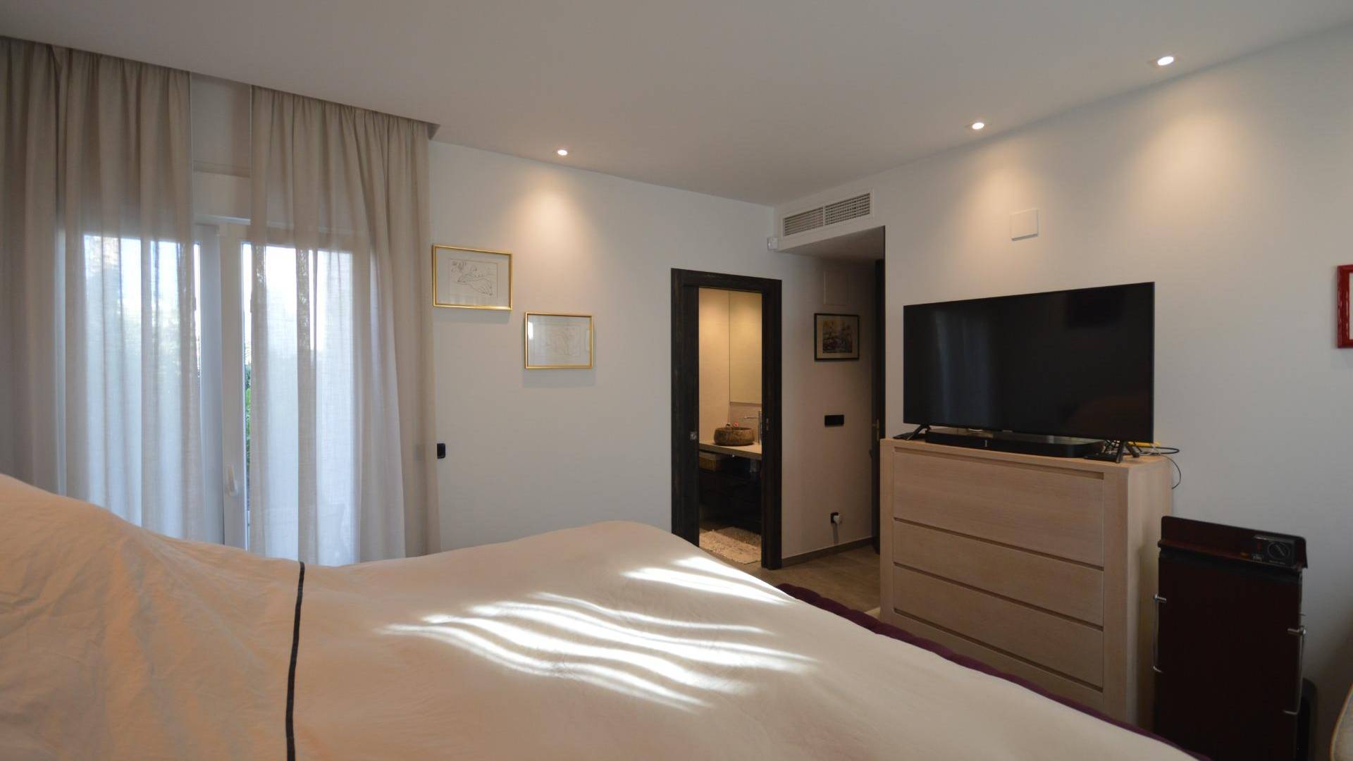 Уникальная отдельно стоящая вилла на продажу в La Finca Golf Resort Построенная на просторном участке площадью 500 м², эта эксклюзивная вилла предлагает светлые открытые жилые пространства, объединяющие гостиную, кухню и столовую. Большие окна наполняют интерьер естественным светом и открываются на впечатляющую террасу в форме буквы «L», ухоженный сад и частный бассейн. Терраса частично покрыта перголой с электрическими маркизами, что делает её идеальным местом для наслаждения средиземноморским климатом круглый год. Текущие владельцы переоборудовали виллу в просторную двухспальную планировку. Однако при небольших изменениях её можно легко вернуть в конфигурацию с тремя спальнями. Вилла может быть продана как меблированной, так и без мебели, по желанию покупателя. Вилла оснащена высококлассными удобствами: зональная система отопления и охлаждения, тёплые полы в ванных комнатах, сигнализация с видеонаблюдением, полная система «умный дом», электрические жалюзи, частный бассейн с наружным душем, зарядная станция для электромобиля, несколько электрических маркиз, частная парковка с автоматическими воротами, а также ухоженные сады с фруктовыми деревьями и ароматическими растениями. Кухня выполнена на высшем уровне, полностью оборудована последней техникой премиум-класса Miele. Вилла расположена в престижном La Finca Golf Resort в Алгорфе, в районе Вега-Баха дель Сегура, и предоставляет жителям широкий спектр удобств: рестораны с национальной и международной кухней, роскошный пятизвёздочный отель со спа и тренажёрным залом, эксклюзивный клубный дом и награждённое 18-луночное поле для гольфа La Finca. Благодаря привилегированному расположению, вилла находится недалеко от великолепных пляжей Гуардамара и Торревьехи, где можно наслаждаться тёплой водой и солнцем более 300 дней в году. Аэропорт Аликанте расположен всего в 40 минутах езды, аэропорт Мурсии — в 55 минутах.