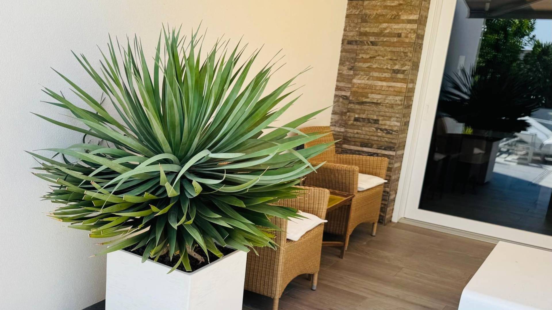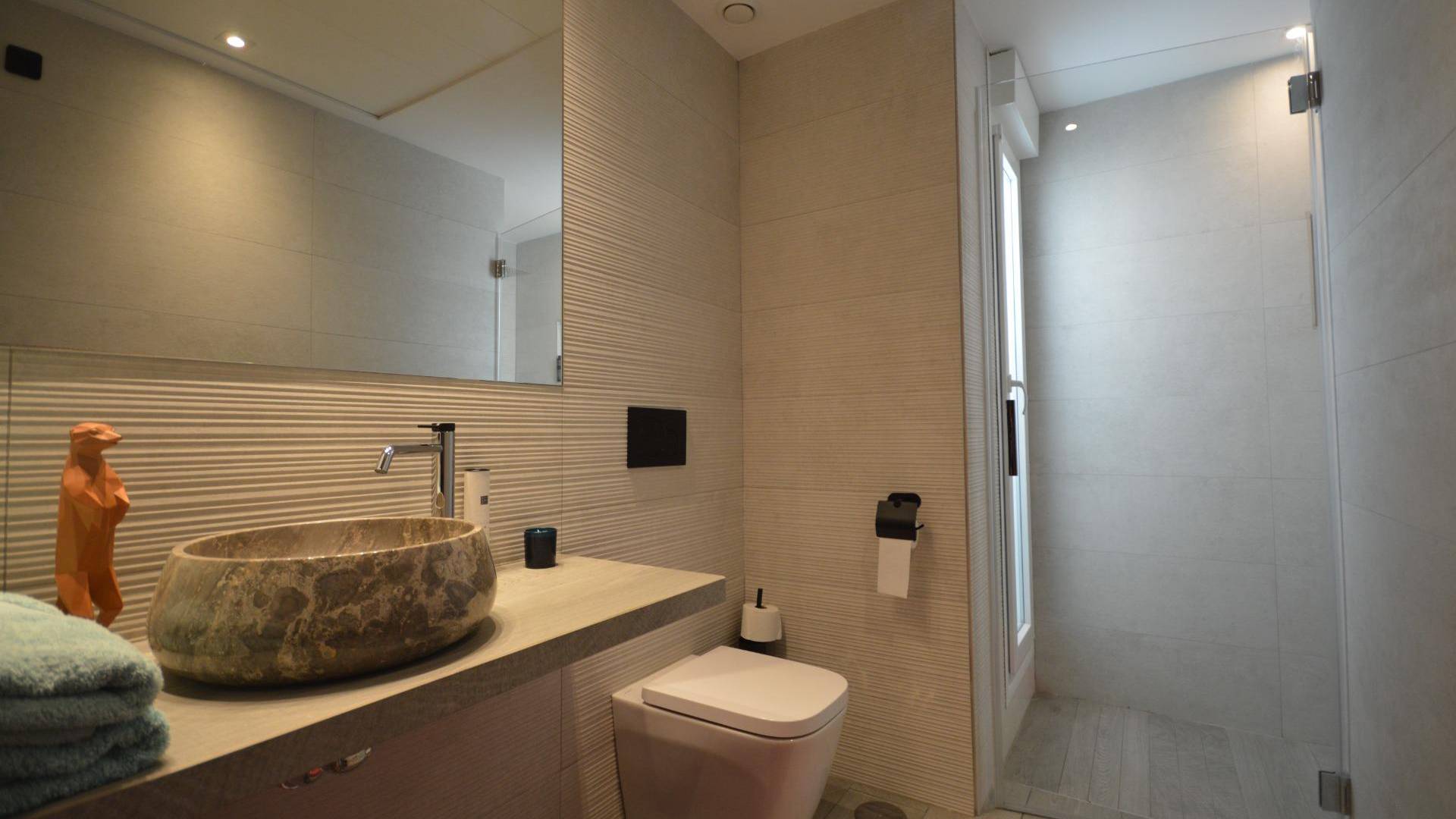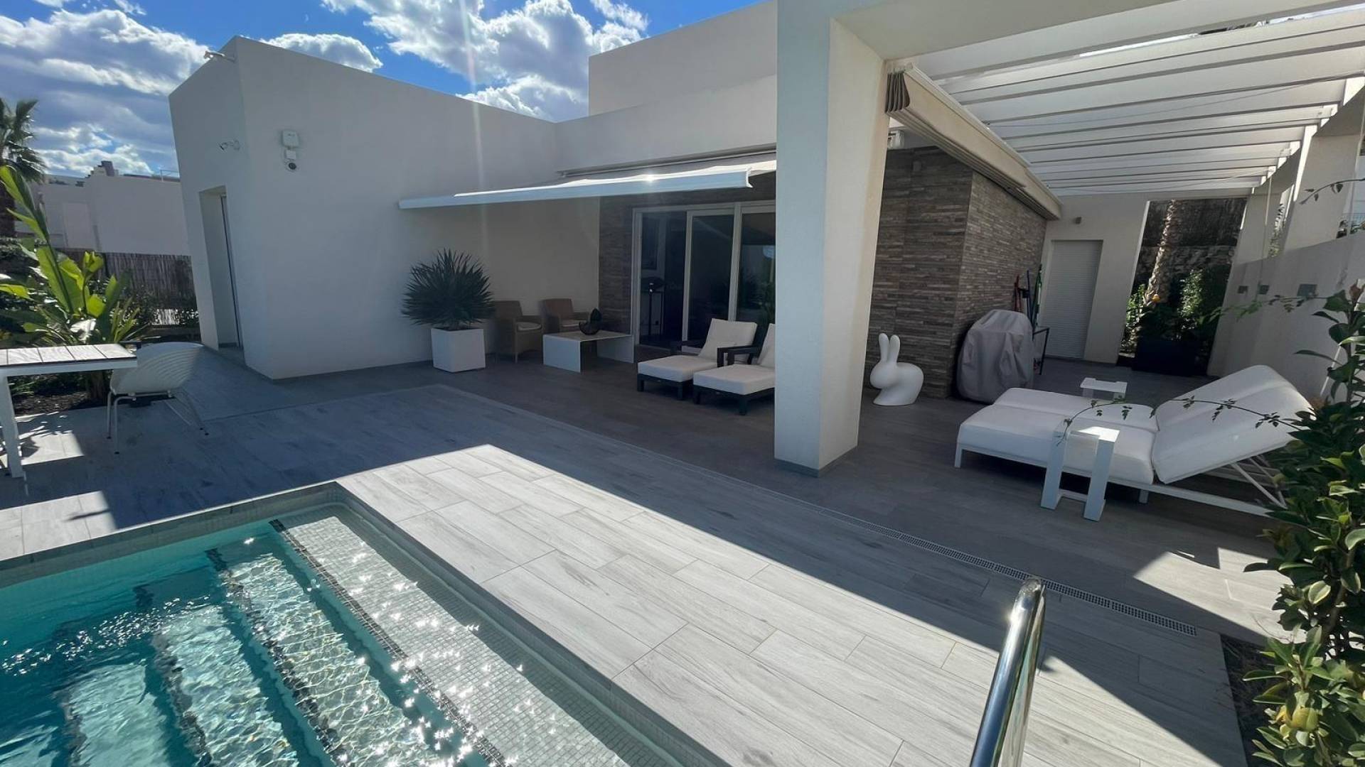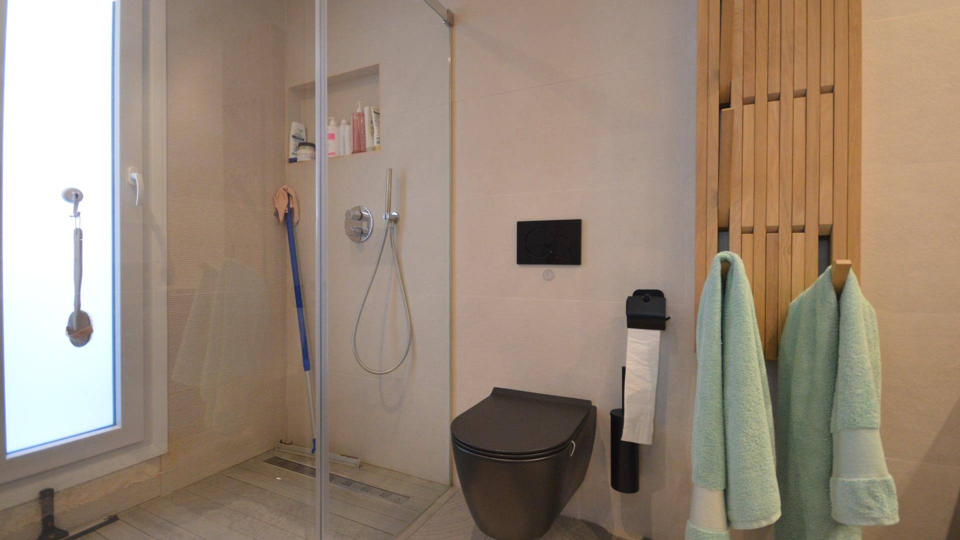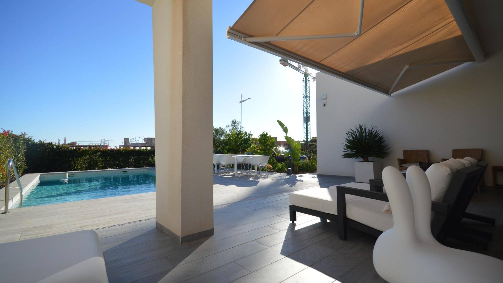 Уникальная отдельно стоящая вилла на продажу в La Finca Golf Resort Построенная на просторном участке площадью 500 м², эта эксклюзивная вилла предлагает светлые открытые жилые пространства, объединяющие гостиную, кухню и столовую. Большие окна наполняют интерьер естественным светом и открываются на впечатляющую террасу в форме буквы «L», ухоженный сад и частный бассейн. Терраса частично покрыта перголой с электрическими маркизами, что делает её идеальным местом для наслаждения средиземноморским климатом круглый год. Текущие владельцы переоборудовали виллу в просторную двухспальную планировку. Однако при небольших изменениях её можно легко вернуть в конфигурацию с тремя спальнями. Вилла может быть продана как меблированной, так и без мебели, по желанию покупателя. Вилла оснащена высококлассными удобствами: зональная система отопления и охлаждения, тёплые полы в ванных комнатах, сигнализация с видеонаблюдением, полная система «умный дом», электрические жалюзи, частный бассейн с наружным душем, зарядная станция для электромобиля, несколько электрических маркиз, частная парковка с автоматическими воротами, а также ухоженные сады с фруктовыми деревьями и ароматическими растениями. Кухня выполнена на высшем уровне, полностью оборудована последней техникой премиум-класса Miele. Вилла расположена в престижном La Finca Golf Resort в Алгорфе, в районе Вега-Баха дель Сегура, и предоставляет жителям широкий спектр удобств: рестораны с национальной и международной кухней, роскошный пятизвёздочный отель со спа и тренажёрным залом, эксклюзивный клубный дом и награждённое 18-луночное поле для гольфа La Finca. Благодаря привилегированному расположению, вилла находится недалеко от великолепных пляжей Гуардамара и Торревьехи, где можно наслаждаться тёплой водой и солнцем более 300 дней в году. Аэропорт Аликанте расположен всего в 40 минутах езды, аэропорт Мурсии — в 55 минутах.