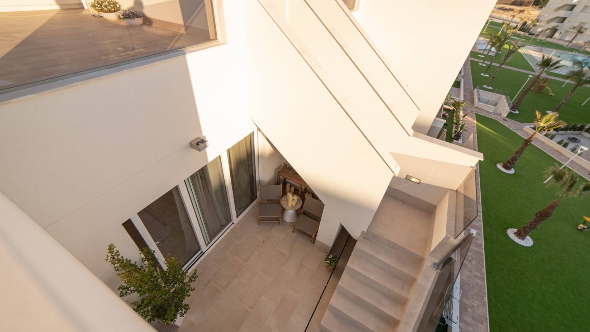A leap forward with respect to our previous residential complexes, including a glassed-in GYM-Spa area with views of green areas, swimming pools and from its terrace overlooking the salt lagoon of La Mata, paddle tennis court, etc. Additionally and thanks to the five floors of some of the blocks that create the residential, all of which are south facing, we include in our luxury penthouses, fully equipped kitchen on the solarium, outdoor shower (hot/cold water), and jacuzzi area, to complete the unique experience of living in front of a unique and unrepeatable natural environment.