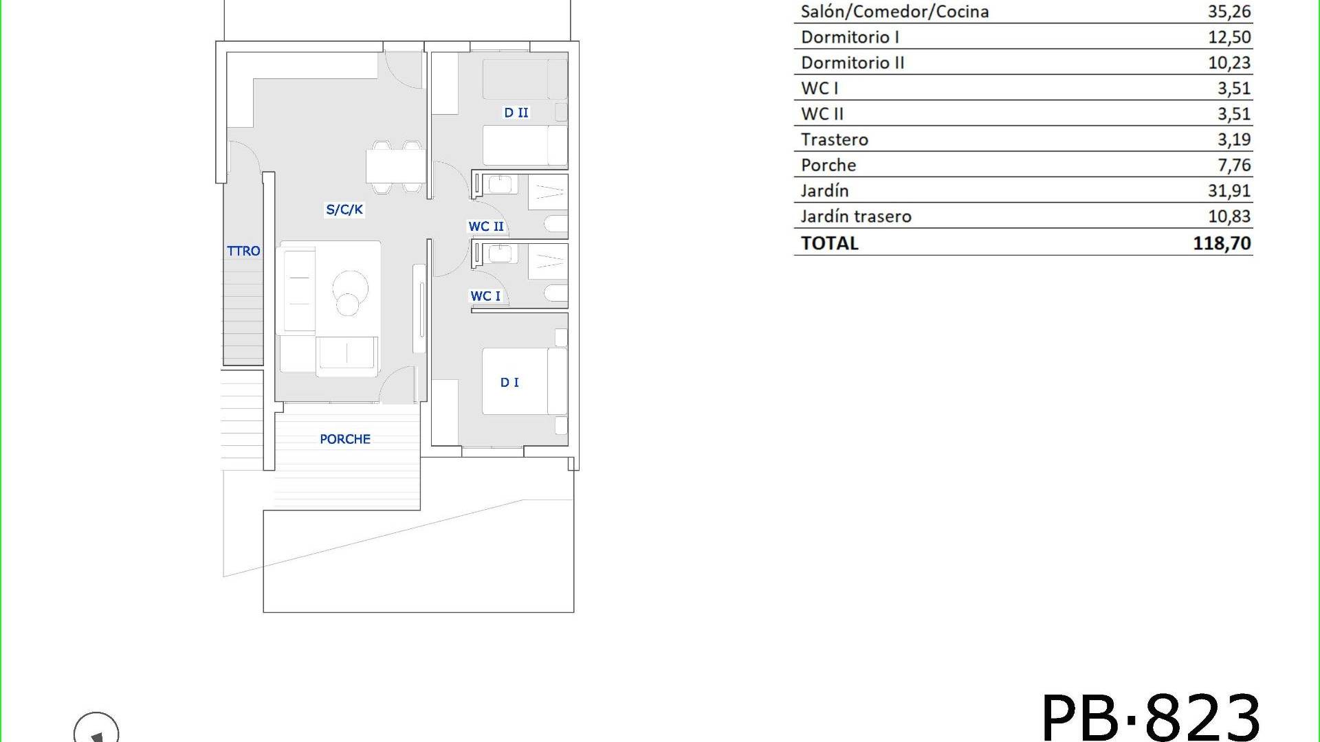 Современные, недавно построенные бунгало в Сан-Мигель-де-Салинас с 3 общими бассейнами Средиземноморский образ жизни в окружении природы Откройте для себя этот современный жилой комплекс из недавно построенных бунгало на окраине Сан-Мигель-де-Салинас, города на юге провинции Аликанте, в шаговой доступности от всех удобств. Этот очаровательный городок сочетает в себе близость к морю и спокойствие природы, что делает его идеальным местом как для постоянного проживания, так и для отдыха. Варианты жилья для любого образа жизни Комплекс предлагает апартаменты в стиле бунгало с 2 или 3 спальнями, доступные в двух планировках: Первый этаж с частным садом и кладовой Верхний этаж с частной солнечной террасой Каждый дом спроектирован с учетом современных и функциональных требований, обеспечивая комфорт, естественное освещение и открытые пространства, чтобы наслаждаться средиземноморским климатом круглый год. Общие зоны для семейного отдыха Этот жилой комплекс полностью огорожен и может похвастаться отличными общими удобствами: 3 больших общих бассейна для взрослых и детей Более 3 400 м² благоустроенных зеленых зон Эти удобства делают комплекс идеальным местом для семей, пар и пенсионеров, ищущих высокое качество жизни в безопасной и спокойной обстановке. Современные удобства и энергоэффективность Дома отличаются высококачественными материалами и тщательной отделкой: Полностью оборудованная кухня Наружные столярные изделия с терморазрывом и двойным остеклением Усиленная входная дверь Включена мебель для ванной комнаты Предварительная установка сплит-систем кондиционирования в гостиной и спальнях Отличное расположение рядом с гольф-полями, пляжами и инфраструктурой Сан-Мигель-де-Салинас стратегически расположен рядом с туристическими и природными зонами: Поля для гольфа, такие как Vistabella, Las Colinas и Campoamor, находятся менее чем в 10 км Пляжи Ориуэла-Коста находятся в 11 км Лагуны Торревьехи и Ла-Маты находятся всего в 8 км Торговый центр La Zenia Boulevard находится в 9 км Аэропорт Аликанте-Эльче находится в 58 км (35 минут езды на автомобиле) Международный аэропорт Мурсии находится в 63 км (1 час езды на автомобиле) Ваш новый дом на Коста-Бланке Эти объекты недвижимости представляют собой отличную возможность для тех, кто ищет качество, комфорт и превосходное расположение. Свяжитесь с нами прямо сейчас, чтобы получить дополнительную информацию или забронировать просмотр и сделать первый шаг к своей жизни на Коста-Бланке.