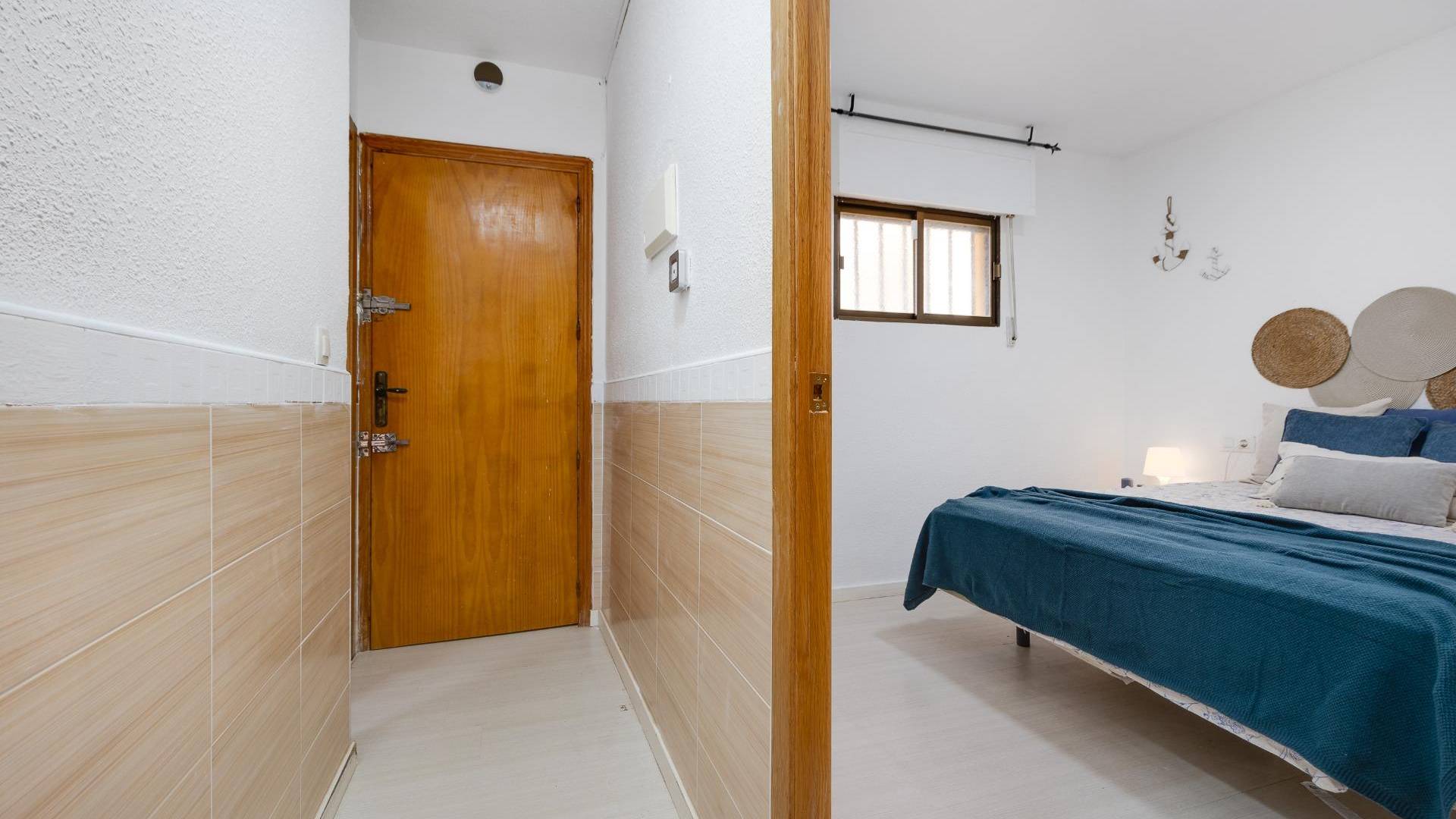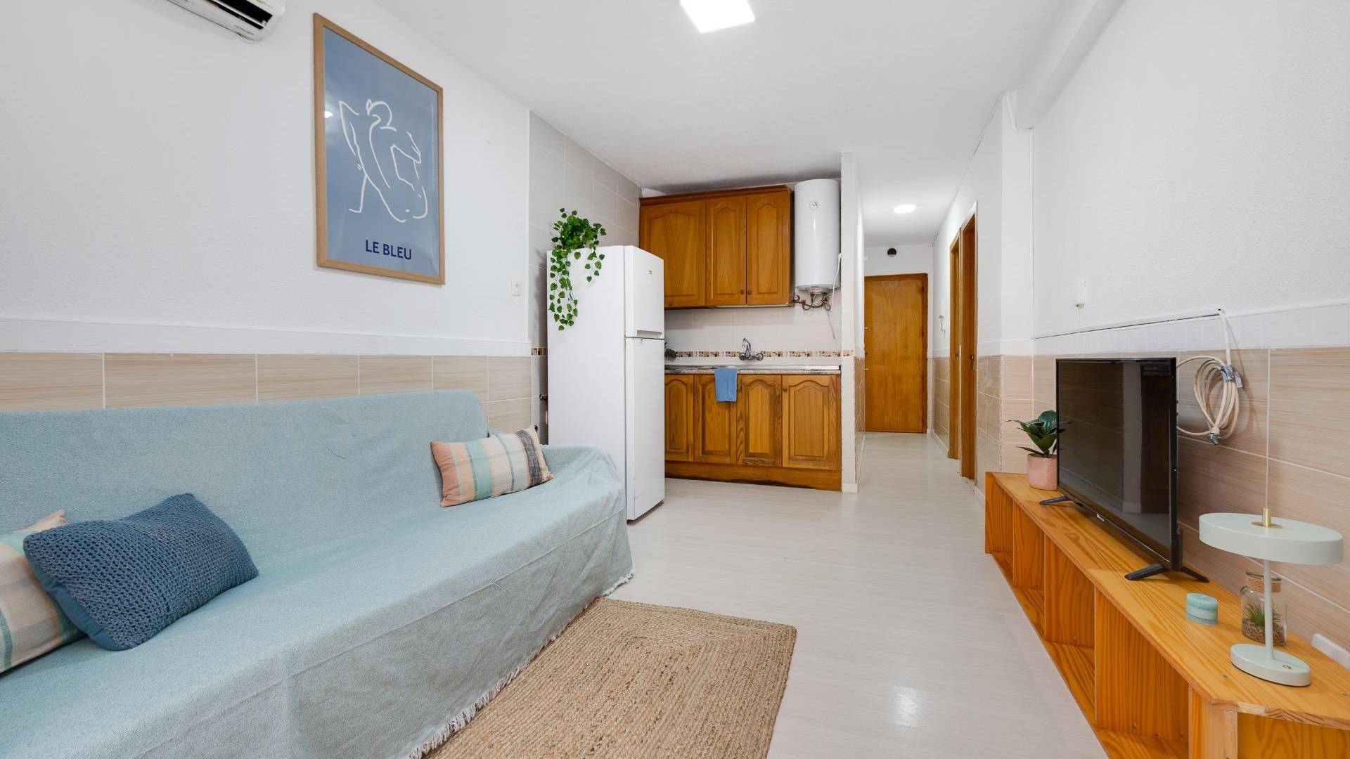 Ощутите атмосферу Средиземноморья в этой светлой квартире в морском стиле, расположенной на второй линии от пляжа, всего в нескольких шагах от моря. Северная ориентация позволяет сохранять прохладу летом, не теряя при этом естественного освещения. Это идеальное сочетание спокойствия и городского комфорта. Квартира включает уютную гостиную-столовую с открытой, полностью оборудованной кухней. Из гостиной есть выход на застеклённую террасу площадью 8 м² с боковым видом на море — идеальное место для отдыха в любое время года. В квартире две спальни (одна двуспальная и одна одноместная) и функциональная ванная комната с душевой кабиной. Важным преимуществом является наличие парковочного места, что обеспечивает максимальное удобство в престижном районе со всеми необходимыми услугами. Это отличная возможность как для выгодной инвестиции, так и для приобретения жилья для отдыха на Коста-Бланка.