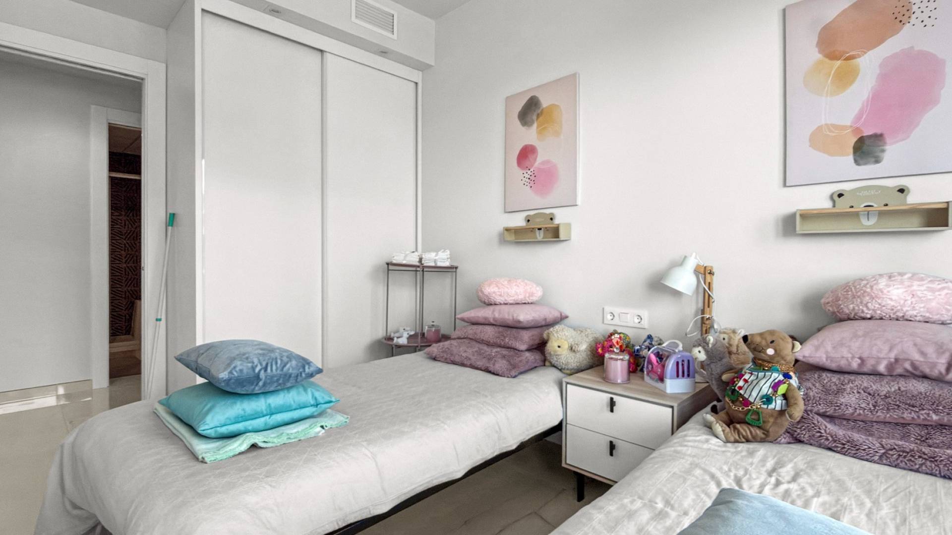 Откройте для себя стильную прибрежную жизнь в этой роскошной квартире с 3 спальнями и 2 ванными комнатами, расположенной рядом с морем и инфраструктурой. Просторная терраса с доступом из всех спален и панорамным видом на море. Главная спальня с ванной комнатой, ещё две спальни и дополнительная ванная. Полностью меблирована дизайнерской мебелью. Оснащена кондиционером, электрическими жалюзи, тёплыми полами в ванных, двойным парковочным местом и кладовой. Закрытый комплекс с бассейном, садом, спортзалом, сауной и джакузи.