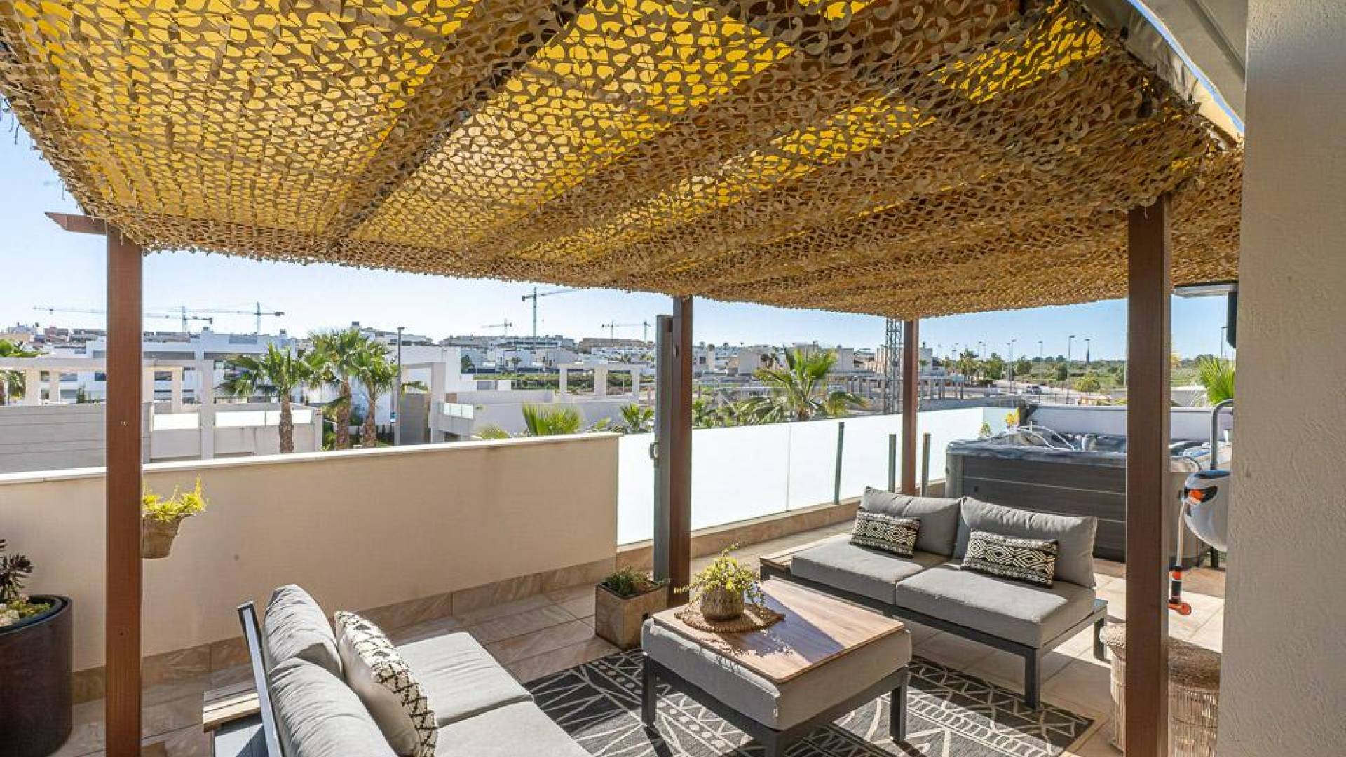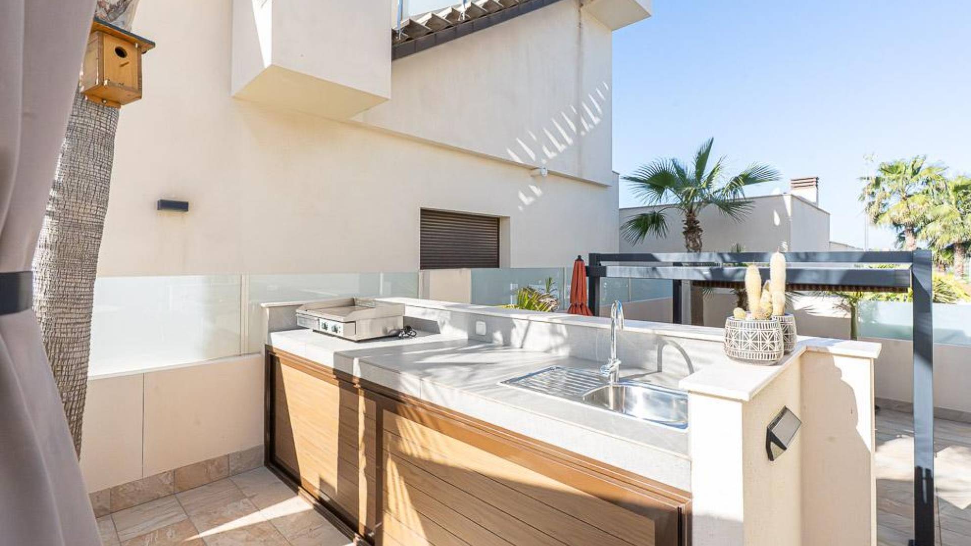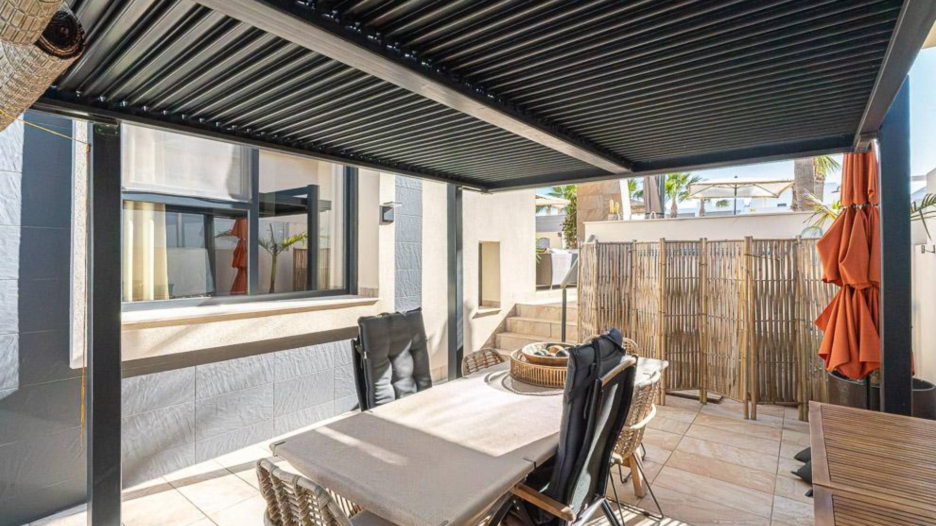 Эта вилла расположена в сложившемся жилом районе в Бенихофаре и предлагает спокойную атмосферу небольшого города, рядом с повседневными удобствами, местными ресторанами и полем для гольфа Ла Маркеса, находящимся в короткой поездке. Пляжи южной Коста-Бланка расположены примерно в 15 минутах, что обеспечивает удобный доступ как к побережью, так и к внутренним районам.Эта готовая к заселению вилла с 4 спальнями распределена на двух основных уровнях и подвале, создавая гибкое и хорошо организованное жилое пространство. Внутренние зоны естественно соединяются с внешними, где сад и различные террасы предлагают пространство для отдыха и приёма пищи на свежем воздухе. Бассейн является центральным элементом внешней зоны и оснащён системой противотока и тепловым насосом. Подвал дополнительно увеличивает полезное пространство и в настоящее время включает тренажёрный зал, прачечную и дополнительные зоны хранения, с подготовленной установкой для создания дополнительной ванной комнаты и ещё одного помещения при необходимости.Недвижимость оснащена кондиционированием воздуха, тёплым полом по всему дому и террасами с перголой, а также джакузи на 5 человек на террасе второго уровня. Установлены солнечные панели для повышения энергоэффективности, а также система фильтрации воды с защитой от накипи по всему дому, включая специальный кран для питьевой воды на кухне. Зона барбекю с летней кухней позволяет наслаждаться приёмами пищи на открытом воздухе.Бенихофар остаётся хорошо связанным и сложившимся местом, сочетающим традиционную атмосферу с современным комфортом, и находится примерно в 35 минутах езды от аэропорта Аликанте.