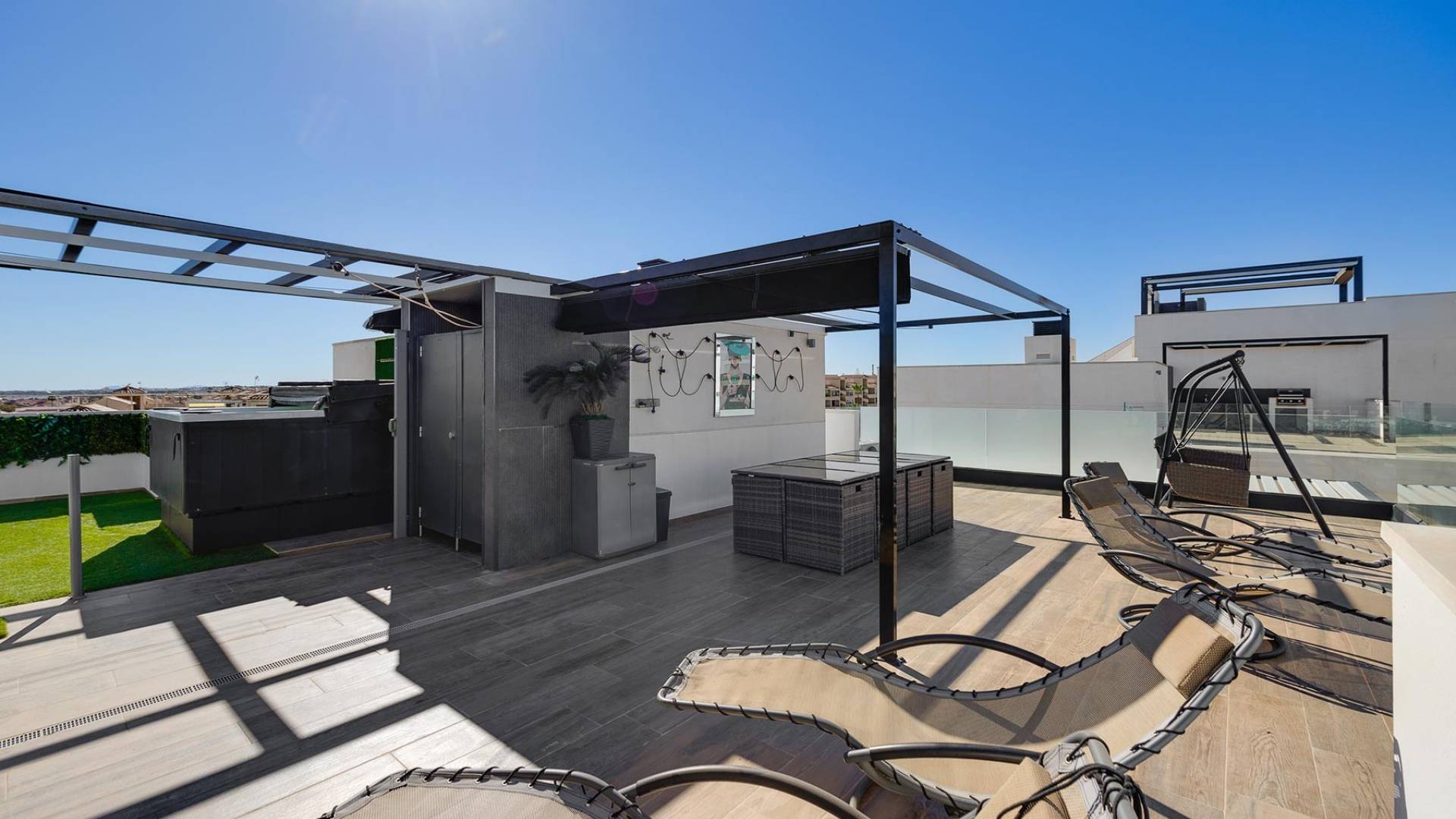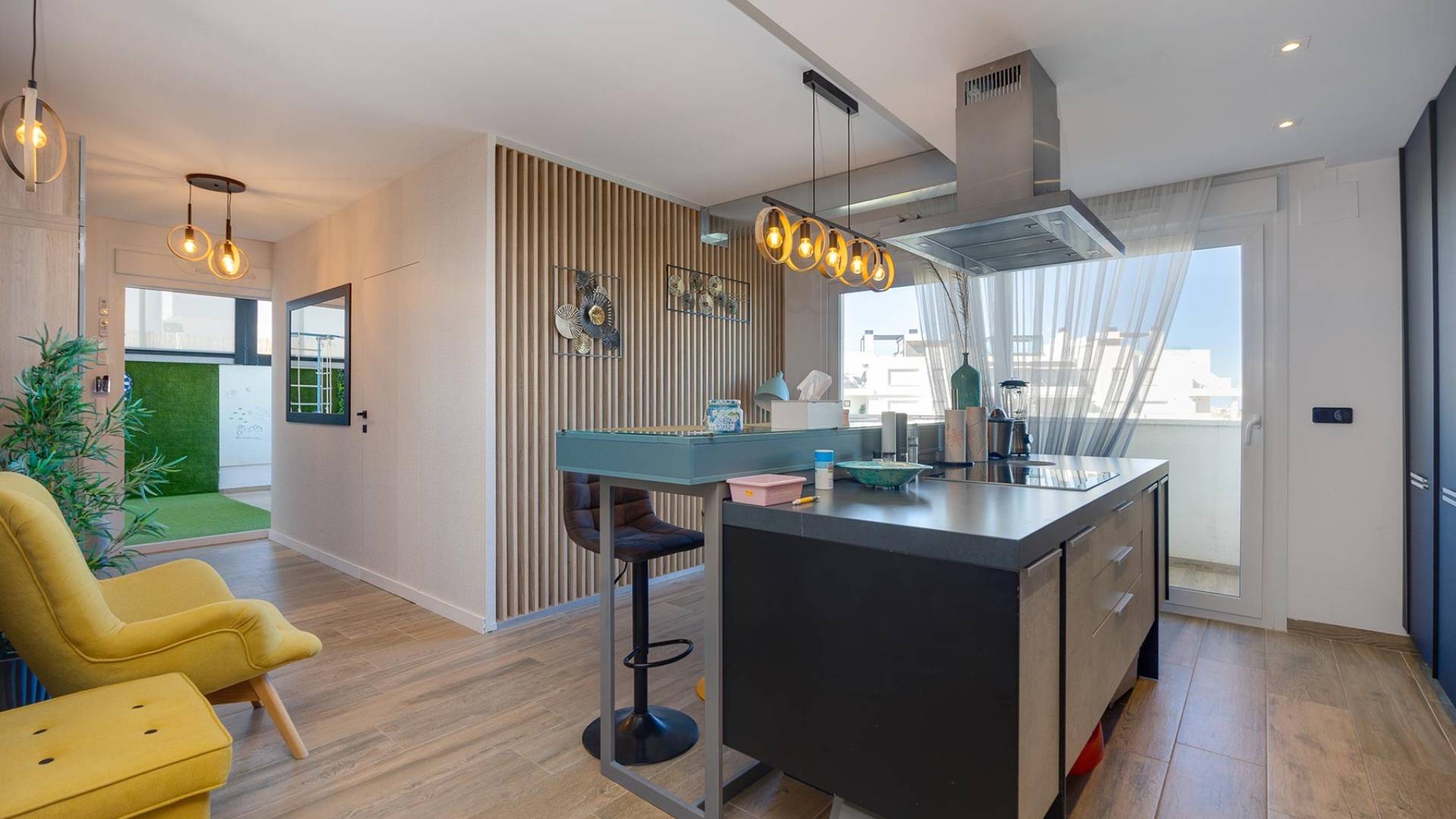 Откройте для себя этот потрясающий , практически новый пентхаус в Пунта-Прима (Ориуэла-Коста) , расположенный в престижном жилом комплексе Residencial Bali . Это уникальная возможность насладиться роскошью, уединением и средиземноморским образом жизни всего в нескольких шагах от моря и всех удобств. В доме 3 спальни и 2 ванные комнаты , выполненные в современном, функциональном и светлом стиле, где каждое пространство тщательно продумано для повседневного комфорта. Кухня выходит на уютную террасу с видом на общий бассейн и море , создавая идеальную атмосферу для отдыха. Одной из главных достопримечательностей является впечатляющая частная терраса на крыше площадью 95 м² , эксклюзивное пространство с открытым видом на море и окрестности , оборудованное джакузи и летней кухней , идеально подходящее для наслаждения средиземноморским климатом круглый год. Пентхаус продается полностью меблированным и оборудованным , готовым к заселению, а также включает в себя парковочное место и кладовую в подземном гараже , что обеспечивает максимальное удобство. Жилой комплекс является частным и огороженным , и предлагает полностью оборудованные общие зоны с просторными садами, общими бассейнами, джакузи, тренажерным залом и сауной , создавая идеальную среду для отдыха и хорошего самочувствия. Этот пентхаус, расположенный всего в нескольких минутах от пляжей Пунта-Прима , недалеко от знаменитого торгового центра Zenia Boulevard и рядом с полями для гольфа, такими как Villamartín Golf , сочетает в себе местоположение, качество и эксклюзивность в одном из самых востребованных районов Коста-Бланки . Кроме того, аэропорт Аликанте-Эльче находится примерно в 45 минутах езды, обеспечивая отличное транспортное сообщение. Если вы ищете пентхаус с солярием и видом на море в Ориуэла-Коста , эта недвижимость — исключительная возможность насладиться привилегированной жизнью на берегу Средиземного моря . Свяжитесь с компанией Sunnier Homes и найдите свой новый дом в Пунта-Прима.