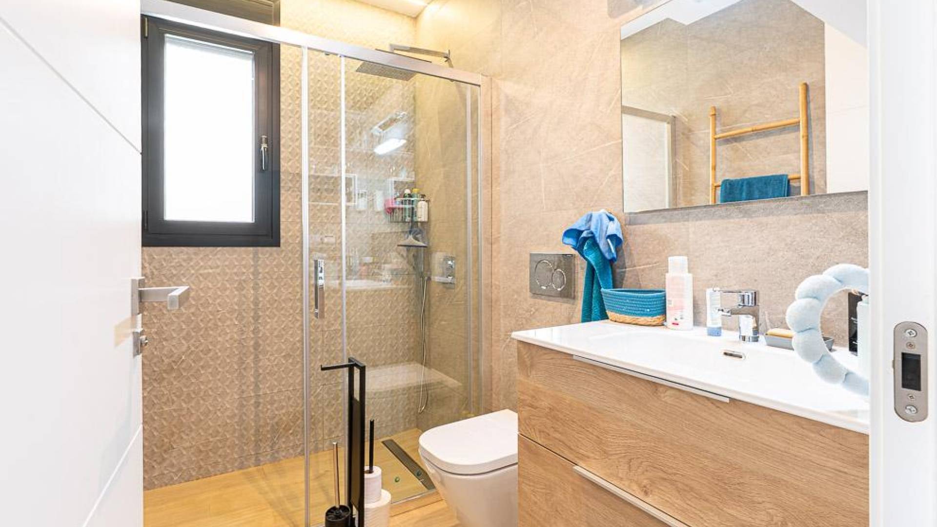 Эта вилла в Бенихофаре на юге Коста-Бланка расположена в спокойном районе в пешей доступности от центра города и всех необходимых услуг. В окрестностях находятся поля для гольфа, аквапарк и широкий выбор ресторанов. Песчаные пляжи Гуардамара расположены примерно в 10 минутах езды, аэропорт Аликанте — в 30 минутах, а аэропорт Мурсии — примерно в 50 минутах.Дом распределён на двух уровнях и включает 3 спальни, 2 ванные комнаты и гостевой туалет. Жилая зона представляет собой светлое пространство с двойной высотой потолков и открытой планировкой, объединяющей гостиную, столовую и кухню, дополненную большими окнами и мезонином, создающим ощущение простора. Внешние зоны включают террасу, соединённую с гостиной, сад с бассейном и террасу на крыше. На участке предусмотрено парковочное место.Недвижимость продаётся без мебели, но с включённой бытовой техникой и кондиционированием воздуха, что обеспечивает комфорт сразу после заселения в сформированном жилом районе.