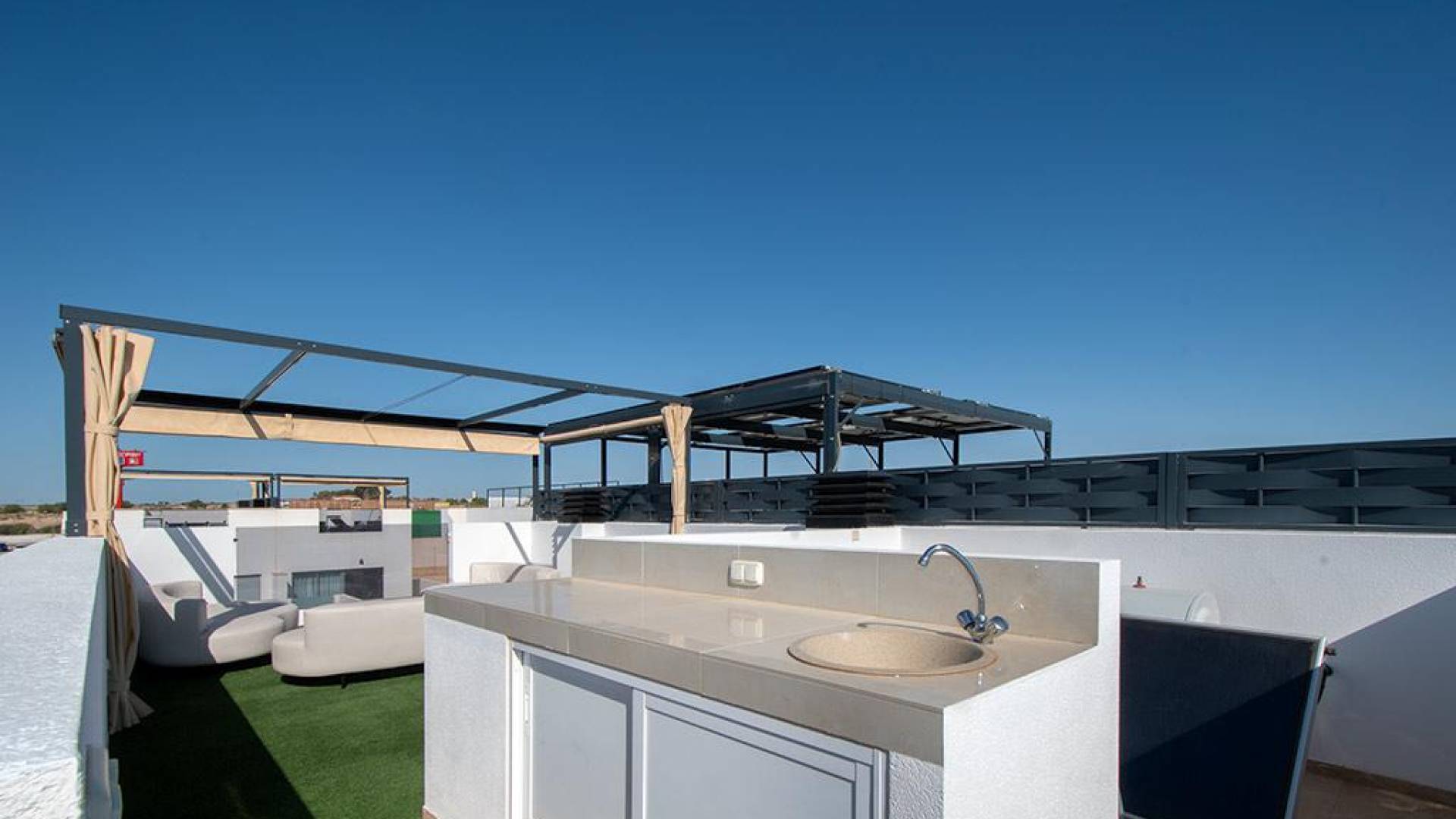 Таунхаус готовый к заселению в популярном жилом районе Сьюдад Кесада в Рохалес. Всего в 10 минутах на машине от великолепных пляжей Гуардамар и Торревьехи, недалеко от прекрасного природного парка лагун Ла Мата. Все услуги для повседневной жизни находятся в нескольких минутах на машине от дома, например, супермаркеты, банки, аптеки, бары и рестораны. Аэропорт Аликанте находится всего в 45 минутах на машине.Красиво оформленный двухэтажный дом с солярием, 3 спальнями, 2 ванными комнатами (одна из них по типу суит) и туалетом для гостей. Просторная и светлая жилая зона объединяет кухню, обеденную зону и гостиную в единое пространство, которое выходит на террасу, выходящую на юго-запад, с частным бассейном и обеденной зоной на открытом воздухе. Главная спальня с собственной ванной комнатой находится на первом этаже, а остальные 2 спальни и общая ванная комната — на втором этаже. Просторная терраса на втором этаже ведет к солярию, который является идеальным местом для наслаждения климатом Коста Бланки, с крытой беседкой с искусственной травой и летней кухней.В доме есть полностью установленный канальный кондиционер (отопление/охлаждение), бытовая техника, частный бассейн и парковка на территории.