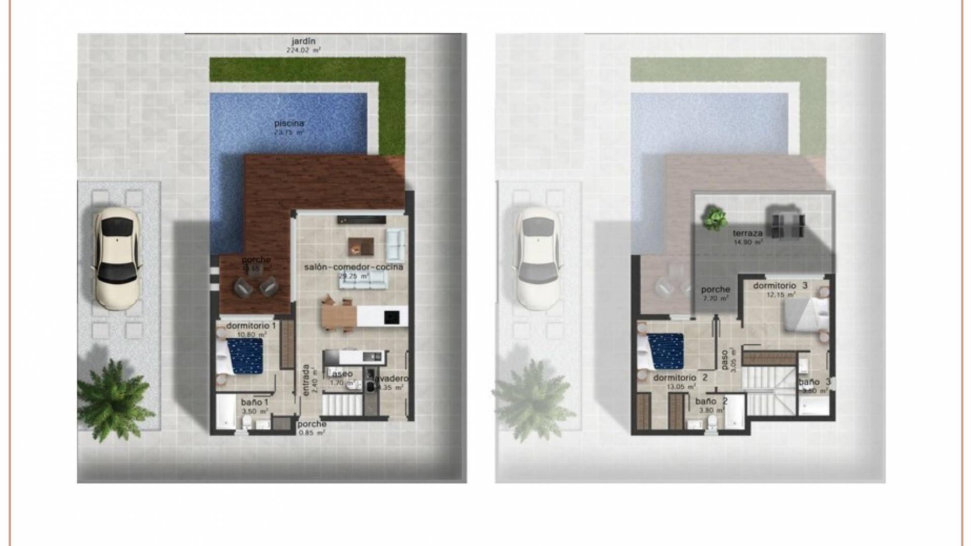 НОВЫЕ ВИЛЛЫ В САН-ПЕДРО-ДЕЛЬ-ПИНАТАР Новостройка красивая двухуровневая вилла были продуманно разработаны, чтобы обеспечить идеальное индивидуальное частное современное жилое пространство, с двойными полностью стеклянные раздвижные двери, которые открываются прямо на большую террасу с частным бассейном огороженные сады с внедорожной парковкой. Идеально подходит для жизни ... Эта фирменная вилла с 3 спальнями, 4 ванными комнатами, подсобным помещением, гостиной и столовой открытого плана, крытой террасой, открытыми террасами из главных спален на втором этаже, частным бассейном с парковкой у дороги и садом. "Солнце весь день" с террасой на втором этаже, чтобы наслаждаться солнцем весь день ... Расположенный в центральном жилом районе, в 10 минутах ходьбы от пляжей Сан-Педро-дель-Пинатар. Привилегированное расположение Сан-Педро-дель-Пинатар на побережье Мар Менор и Средиземного моря привлекает тех, кто интересуется парусным спортом и водными видами спорта, предоставляя причалы и парусные клубы, а пляжи и природные грязевые ванны привлекают тех, кто ищет безопасное солнце, море и песок. В Сан-Педро-дель-Пинатар сложившееся сообщество предлагает отличный выбор развлечений, включая крытый бассейн и спортивные сооружения, а также круглогодичную программу социальных мероприятий в приятную зимнюю погоду. Преимущества грязевых ванн, типичных для этого региона, или спокойных вод Мар Менор способствовали росту Ло Паган, который в настоящее время располагает всеми видами удобств. Кроме того, он имеет отличное местоположение, всего в 5 минутах от коммерческого центра Дос Марес. Аэропорт Мурсия/Корвера находится в 30 минутах езды, а аэропорт Аликанте - в часе езды.