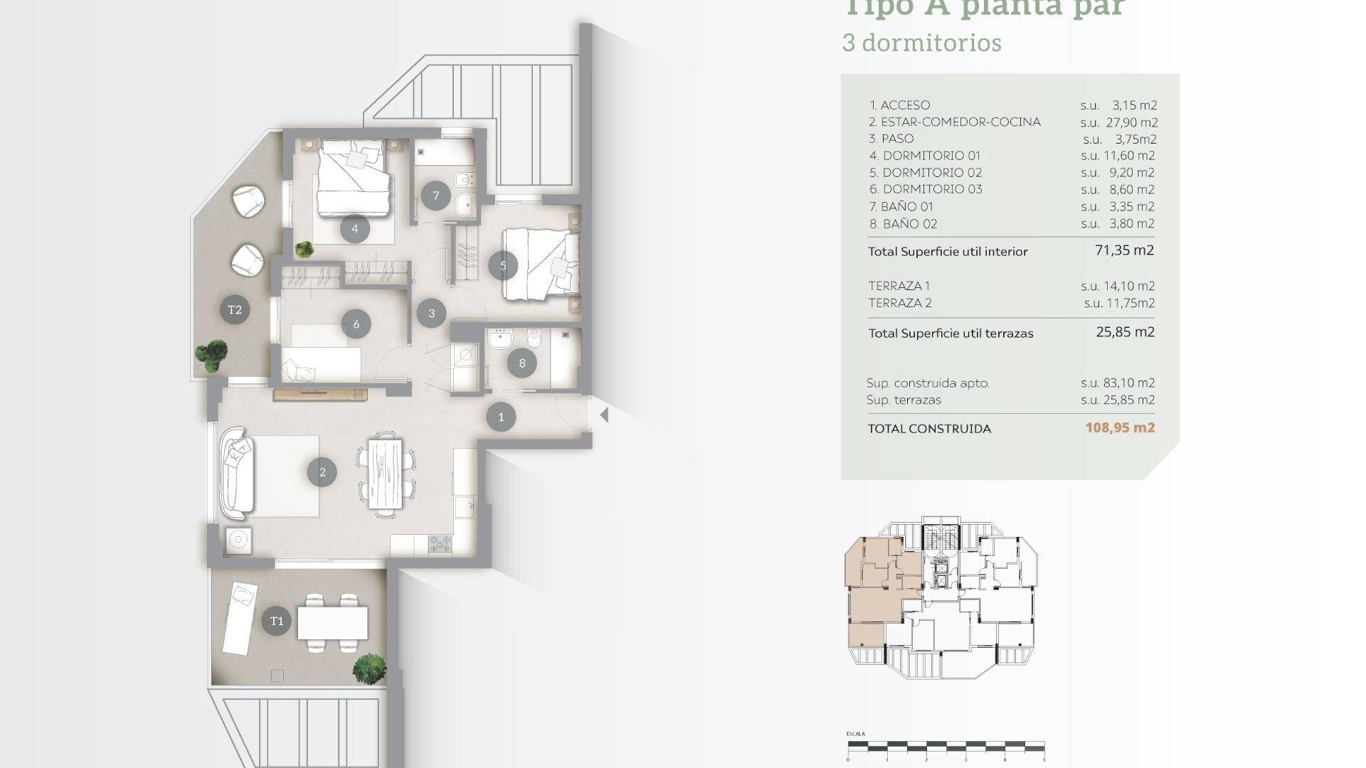 НОВЫЕ КВАРТИРЫ В КАЛЬПЕ Новый жилой комплекс из 2 и 3 спальных квартир с большими террасами в Кальпе. Две башни по 12 этажей с прекрасными квартирами с видом на море и соленое озеро Кальпе. Наполненный светом дом, в гармонии с природой, с кухней открытого плана с гостиной, встроенными шкафами, просторными террасами и видом на море. Каждая квартира имеет подземное парковочное место. Большая общая территория с 2 большими бассейнами, один из которых с пляжным входом, зона шезлонгов с искусственной травой, детская игровая зона, корт для большого тенниса, парковка для велосипедов, садовые зоны. В Кальпе царит привилегированный микроклимат, а жилой комплекс расположен всего в 200 метрах от пляжа Эль-Ареналь. Идеальное место, чтобы насладиться тишиной, покоем и синевой моря. Вместе со своими близкими проверьте все, что оно может предложить: подводные развлечения, где вы сможете открыть для себя флору и фауну Средиземноморья, а также заняться всеми видами водного спорта в международных школах. Кальпе, один из городов Ла Марина Альта, расположен на северном побережье провинции Аликанте, в окружении городов Альтеа, Бенидорм, Теулада-Морайра, Бенисса. В Кальпе прекрасно сочетаются старая валенсийская культура и современные туристические удобства. Это прекрасная база, откуда можно исследовать местность или насладиться многочисленными местными пляжами. Только в Кальпе есть три самых красивых песчаных пляжа на побережье. В Кальпе также есть два парусных клуба: Real Club Náutico de Calpe и Club Náutico de Puerto Blanco. Рыбацкая деревушка Кальпе превратилась в туристический магнит. Город расположен в идеальном месте, до него легко добраться по автомагистрали A7 и шоссе N332, ведущему из Валенсии в Аликанте; примерно 1 час езды до аэропорта Аликанте и 1,5 часа до аэропорта Валенсии.