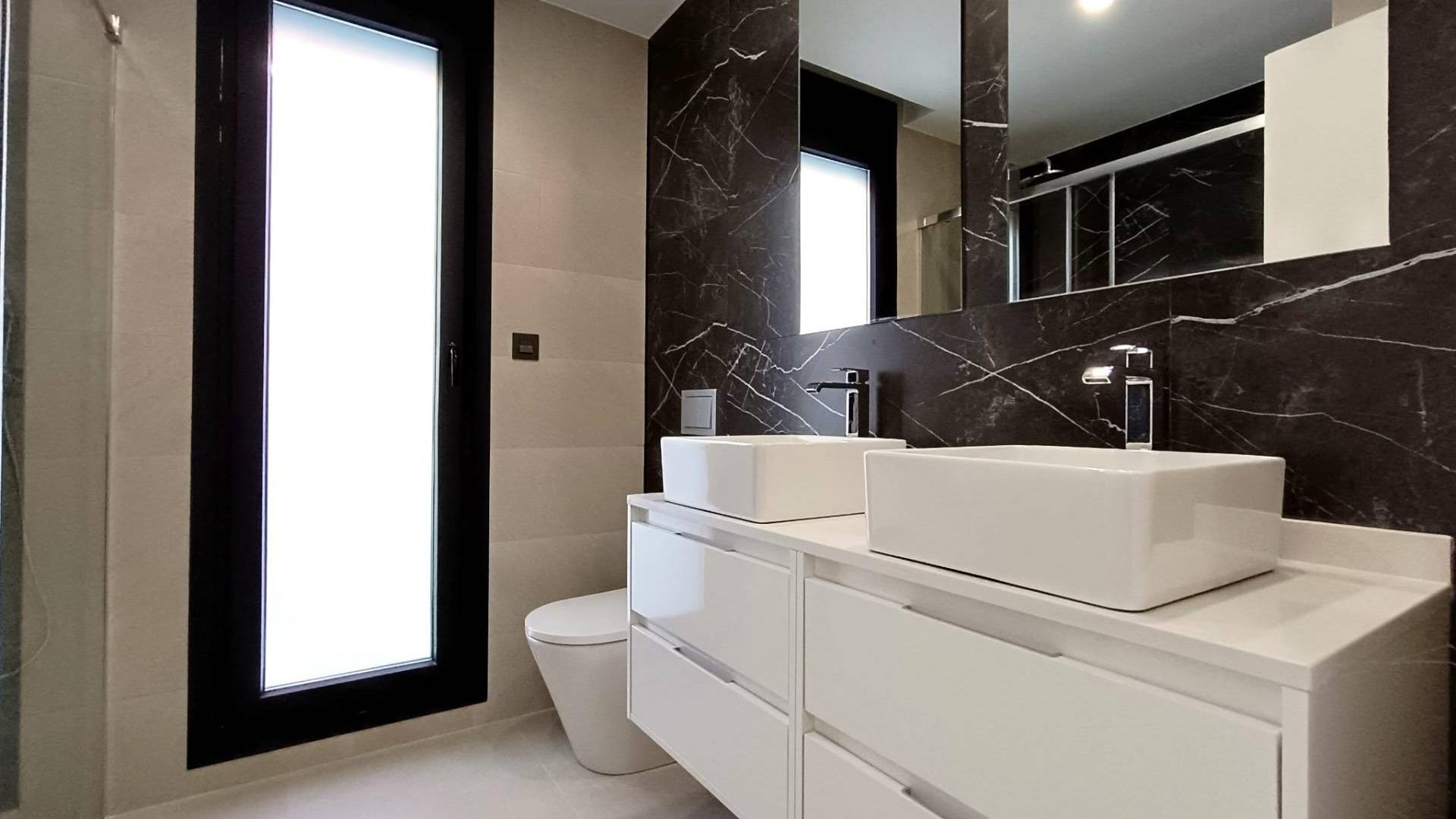 Lyxiga nybyggda parhusvillor i Benijófar, Costa Blanca Förstklassigt läge i Benijófar med bekväm tillgång till bekvämligheter Upptäck en ny nivå av lyxboende i den charmiga staden Benijófar, ett mycket eftertraktat område på Spaniens Costa Blanca. Dessa nybyggda parhusvillor ligger i ett livligt område med en perfekt blandning av modernitet och lokal charm och erbjuder enkel tillgång till alla viktiga tjänster och attraktioner. Bara 10 km från de gyllene stränderna i Guardamar del Segura och 30 km från Alicante flygplats är villorna strategiskt placerade för bekvämlighet och livsstil. Rymlig och modern design med förstklassiga ytbehandlingar Varje villa är designad med en modern estetik, med rena linjer och högkvalitativa ytbehandlingar. Planlösningen omfattar tre rymliga sovrum och tre badrum, vilket ger gott om utrymme för familjer eller gäster. Den öppna planlösningen mellan vardagsrum och matsal ansluter sömlöst till ett fullt utrustat kök, vilket ger ett perfekt utrymme för underhållning och familjesammankomster. Stora fönster släpper in mycket naturligt ljus, vilket skapar en ljus och välkomnande atmosfär i hela hemmet. Privata utomhusutrymmen med pool och solarium Dessa villor har privata utomhusutrymmen som är utformade för avkoppling och njutning av Medelhavsklimatet. Den kaklade trädgården har en 2,5x5 m pool, perfekt för att svalka sig under varma dagar, och gott om parkeringsplatser. Fastigheterna har också ett solarium på taket, där du kan njuta av utsikten över det omgivande området. Solariet är utrustat för en potentiell jacuzzi-installation, vilket gör det till en perfekt plats att varva ner och njuta av solnedgången. Högkvalitativa inkluderingar för ultimat komfort Varje villa är fullt utrustad med toppmoderna apparater, inklusive en kylfrys med paneler, induktionshäll, diskmaskin med paneler, inbyggd mikrovågsugn och ugn. Ytterligare funktioner inkluderar luftkonditioneringsenheter för klimatkontroll, golvvärme i badrummen och elektriska fönsterluckor för integritet. Spotlights och vägglampor utomhus förhöjer stämningen och gör varje villa både funktionell och lyxig. Benijófar: En blandning av tradition och modernt boende Benijófar är en charmig by med en välkomnande atmosfär, känd för sin vackra kyrka, lokala butiker, stormarknader, apotek, banker och utsökta restauranger. Naturälskare kommer att uppskatta den närliggande naturparken, perfekt för promenader och utforskning. Golfentusiaster hittar flera golfbanor inom en kort bilresa, medan familjer kan njuta av närliggande vattenparker i Rojales (4 km) och Torrevieja (12 km). Villorna är också väl anslutna, med motorvägarna N-332 och AP-7 som ger enkel åtkomst till omgivande städer. Är du redo att göra Benijófar till ditt nya hem? Omfamna lyxen och bekvämligheten i dessa moderna villor i Benijófar. Missa inte denna möjlighet att njuta av livet på Costa Blanca. Kontakta oss idag för att ordna en visning och ta det första steget mot ditt drömhem.