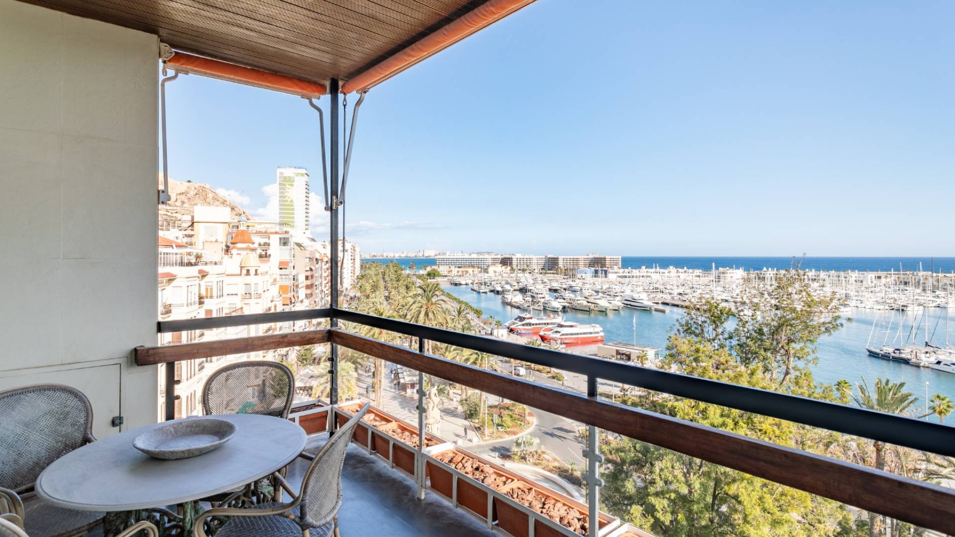 Costa Weflen Group presenterar denna exklusiva lyxlägenhet till salu, belägen i första havslinjen i Alicante, i det ikoniska området Explanada de España. Njut av spektakulär panoramavy över Medelhavet, Alicanteterminalen, det historiska Santa Bárbara-slottet och den berömda Explanadan från vardagsrummet eller terrassen.