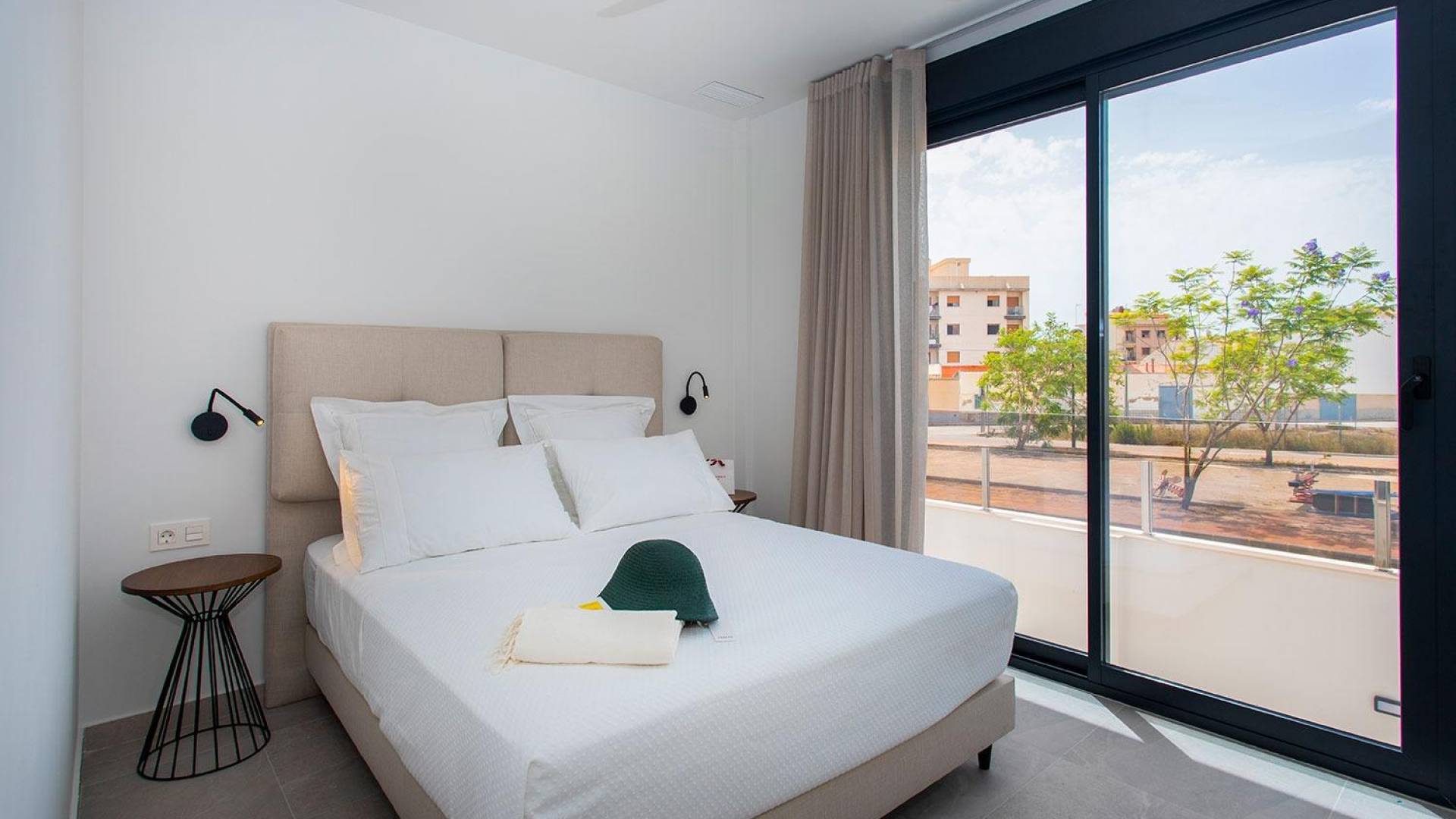 Nybyggda parhusvillor i Sucina: sista enheten Fullt utrustad och inflyttningsklar Enastående möjlighet i Sucina Detta är din chans att säkra den sista tillgängliga enheten i detta moderna nybyggnadsprojekt, som tidigare användes som visningshus. Den är nyckelfärdig och levereras fullt utrustad med möbler, vitvaror, belysning inomhus och utomhus, luftkonditionering, laddare för elbilar och ett utomhuskök med kylskåp. En unik nyckelfärdig möjlighet i en av de charmigaste städerna på Costa Calida. Modern design med fokus på ljus och komfort Dessa parhusvillor utmärker sig genom sin eleganta och rena moderna design, med planlösningar som är skapade för att maximera det naturliga medelhavsljuset. De huvudsakliga vardagsrummen har en öppen planlösning där köket och vardagsrummet smälter samman sömlöst, förbundna av en stilren central köksö. Detta utrymme flyter direkt ut till verandan och poolterrassen, vilket skapar en harmonisk livsstil inomhus och utomhus, idealisk för soliga dagar. Enplanshus med privat pool och solarium Villan har 3 sovrum och 2 badrum på en våning, plus en praktisk gästtoalett utomhus för poolområdet. Det stora sovrummet är exceptionellt ljust och har ett eget badrum, klädkammare och direkt tillgång till huvudterrassen. Fastigheten har också ett imponerande solarium på 82 m2, perfekt för solbad eller för att skapa en utomhuslounge. Villan är byggd på en tomt på 211 m2 och har parkering på tomten. Utmärkt läge nära alla tjänster Villan ligger bara en kort promenad från centrum av Sucina och erbjuder omedelbar tillgång till dagliga bekvämligheter som butiker, restauranger och stormarknader. Sucina är en traditionell spansk stad som har vuxit i popularitet de senaste åren tack vare sin avslappnade livsstil, autentiska atmosfär och närhet till kusten. De vackra stränderna på Costa Calida och Mar Menor ligger bara några minuter bort. Avstånd till viktiga sevärdheter Murcia flygplats 25 km Alicantes flygplats 75 km Stränderna vid Mar Menor 15 km Närmaste golfbana 4 km Hamnen i San Pedro del Pinatar 20 km Lev ett högkvalitativt medelhavsliv Dessa villor är byggda med utmärkta material och designade för komfort. De erbjuder en exceptionell möjlighet att njuta av öppna ytor, naturligt ljus och ren luft året runt. Kontakta oss idag för att boka en visning och säkra detta exklusiva nyckelfärdiga hem i Sucina.