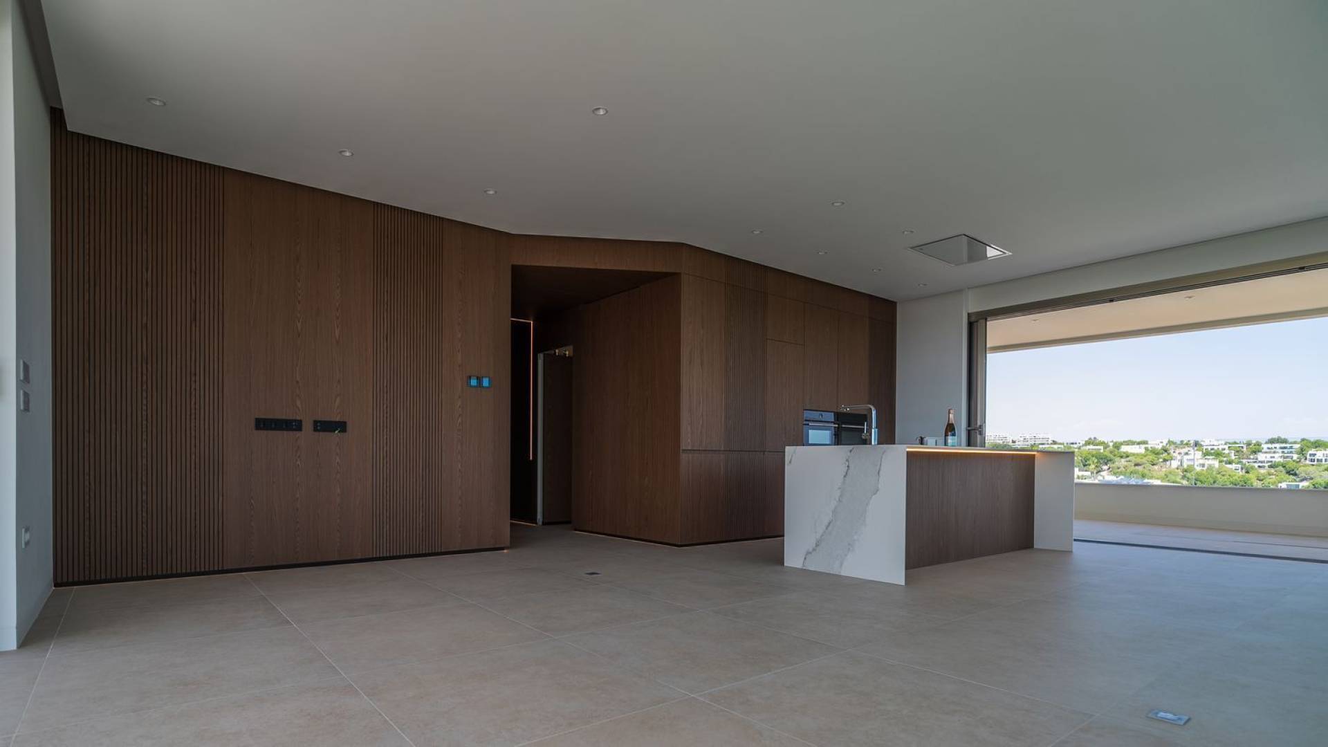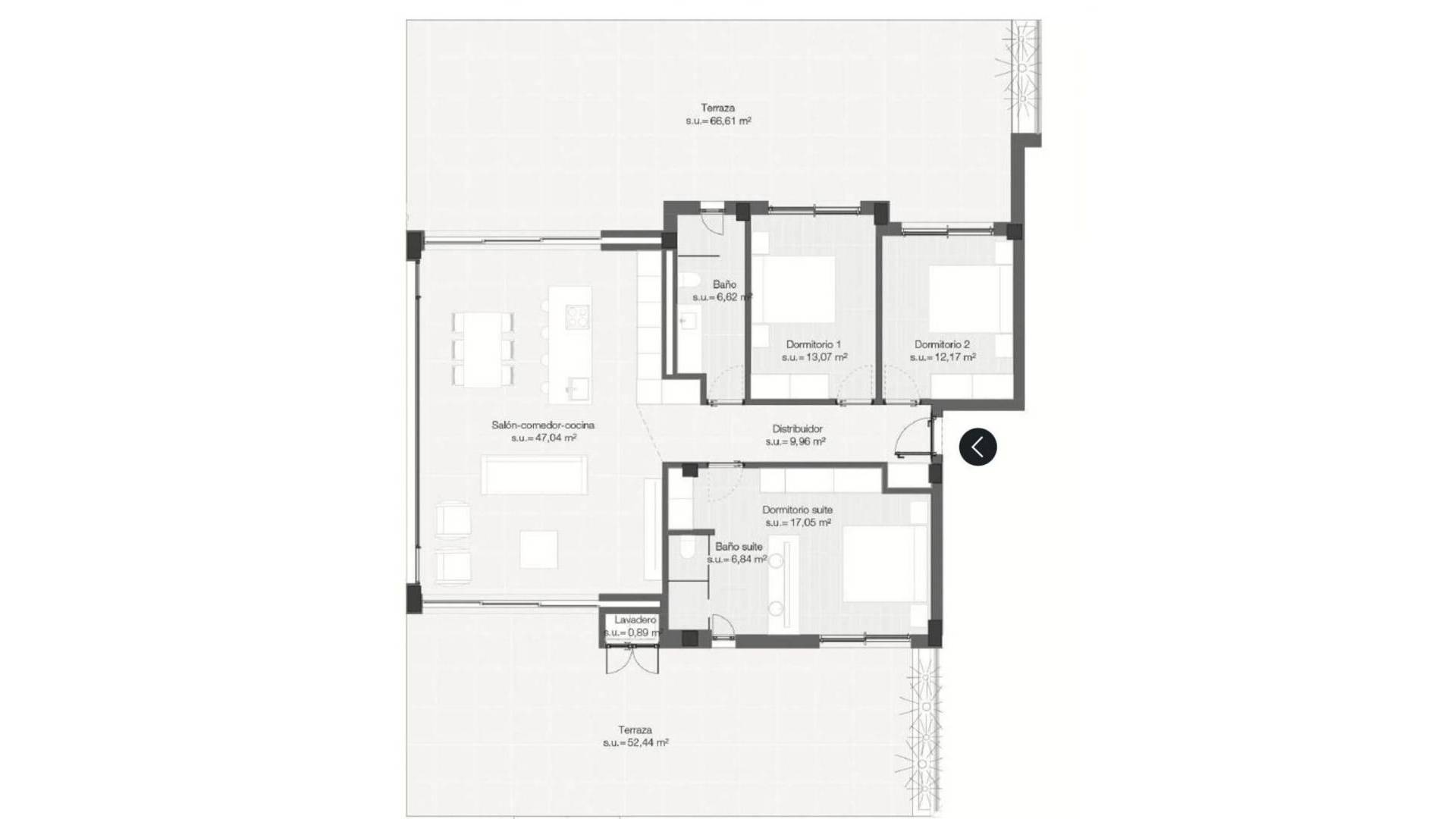 Denna smakfullt inredda tre‑sovrumslägenhet med två badrum finns i exklusiva Madroño‑området vid Las Colinas Golf & Country Club. Lägenheten är aldrig tidigare bebodd och är vackert belägen med utsikt över golfbanan, omkringliggande natur och, vid klar himmel, Medelhavet i fjärran. Master bedroom har ett privat badrum en suite, medan de övriga två sovrummen delar ett andra modernt badrum. Det öppna köket med köksö har en integrerad matplats och övergår naturligt i vardagsrumsdelen. Inredningen präglas av jordnära färger, designbelysning och väggar med träpaneler där integrerad belysning vid socklarna skapar en exklusiv känsla. Två rymliga terrasser förlänger bostaden utomhus och erbjuder privat avnjutning av morgonkaffe eller kvällen i lugn och ro. En garageplats och ett privat förrådsutrymme ingår i priset. Föreningens gemensamma faciliteter omfattar vackert anlagda trädgårdar, en stor pool och ett modernt gym. Las Colinas Golf & Country Club omfattar 330 hektar skyddad natur söder om Alicante. Resorten erbjuder en prisbelönt golfbana, kvalitetsrestauranger, naturstigar, sportaktiviteter och exklusiv strandklubb i Campoamor. Denna lägenhet i Madroño representerar inte bara ett hem med lyxig standard, utan också en livsstil präglad av komfort, ro och elegans.