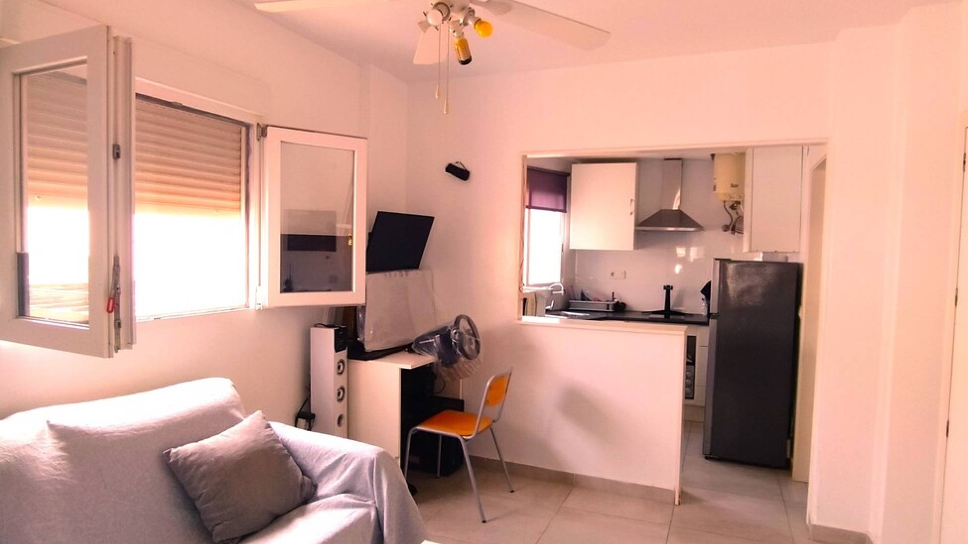 Lägenheten presenteras som en studio, men har ett separat sovrum med inbyggd garderob och en terrass. Den har en inbyggd yta på 34 m². Den har ett ljust och bekvämt vardagsrum med luftkonditionering, en bäddsoffa, ett fullt utrustat kök med öppen planlösning och ett badrum med dusch. Den ligger bara 380 meter från stränderna i Náufragos och lite längre från Acequión-stranden.STORT FÖRRÅD INGÅR I PRISETSäljs möblerad och utrustad som visas på bildernaGEMENSAM POOLByggnaden UTAN hissNORDVÄSTLIGTByggår: 1989Ägaravgift: 300 € per årTotal fastighetsskatt: 150 € per år