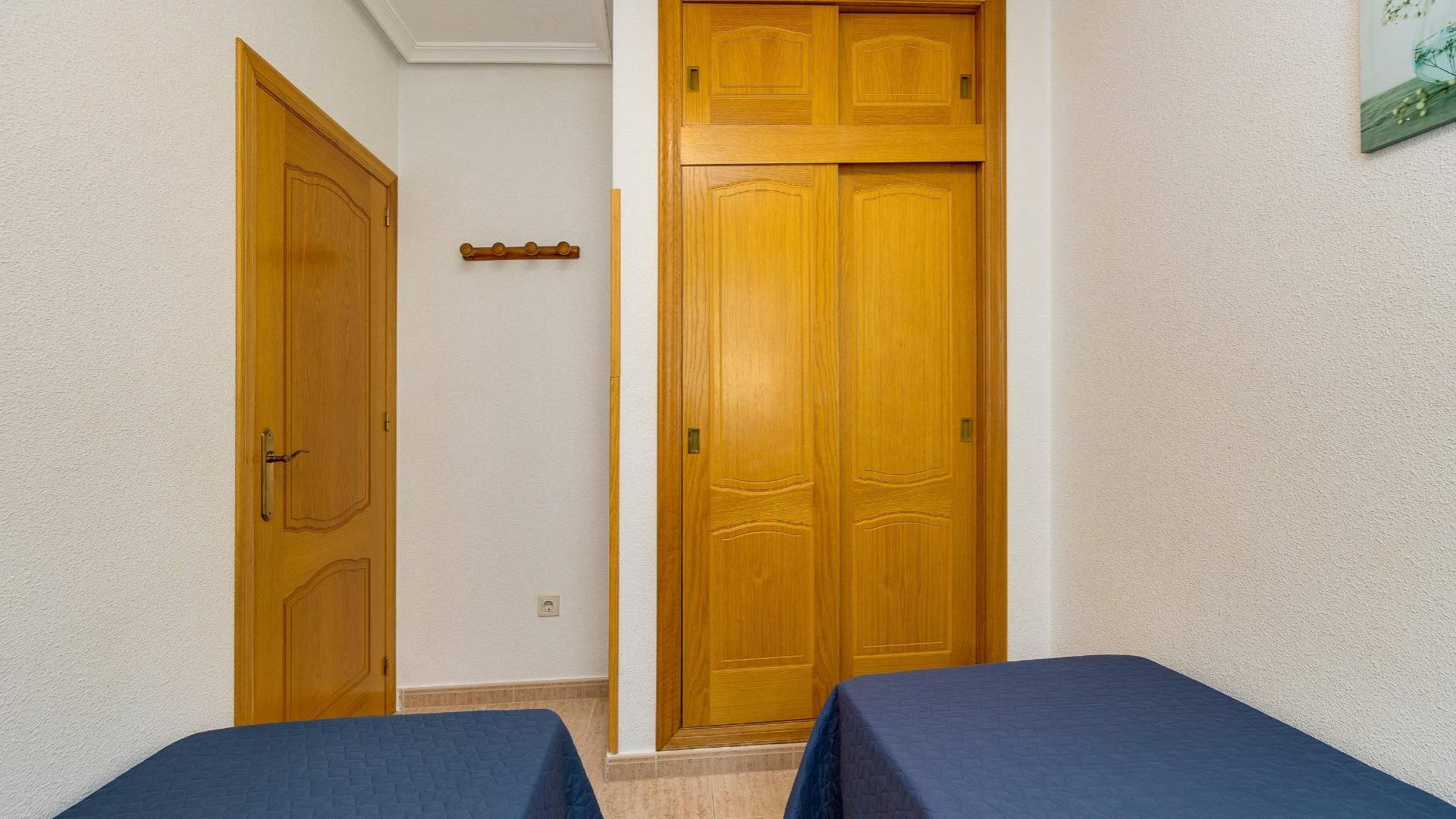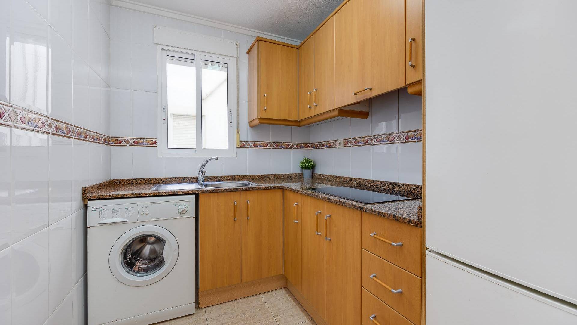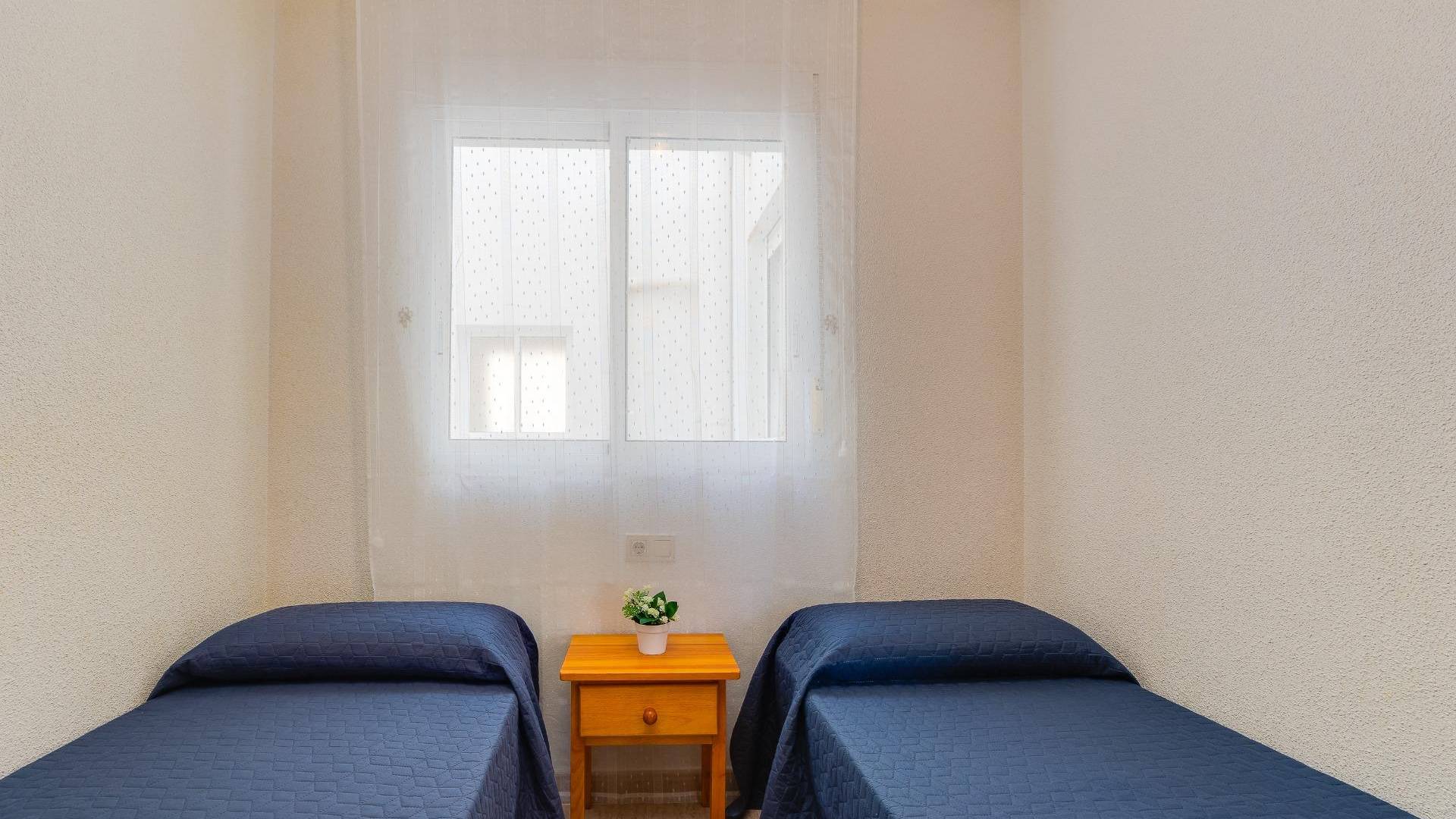 VACKER, RYMLIG OCH TYST Upptäck denna charmiga lägenhet i Torrevieja, belägen nära busstationen. Med en byggd yta på 66 m² och en användbar yta på 60 m² utmärker sig denna fastighet för sitt utmärkta skick och rikliga naturliga ljusinsläpp. Den har en terrass i österläge med fri utsikt. Lägenheten har två rymliga och bekväma sovrum med dubbelsäng. Det separata köket är perfekt utformat och hela lägenheten erbjuder en lugn atmosfär. Byggnaden ståtar med ett rent och välskött bostadsområde; du kan också koppla av under de varma sommardagarna tack vare den gemensamma poolen. Beläget bara 1600 meter från havet, har du nära till allt du behöver: stormarknader, restauranger, apotek, hälsocenter etc.