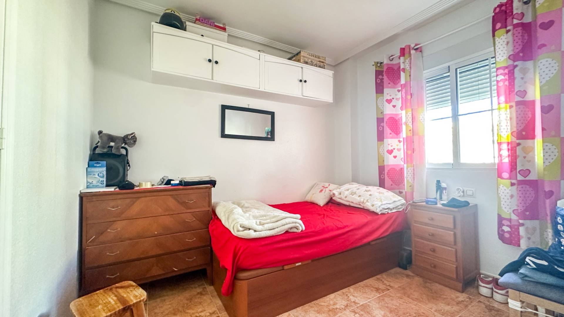 Denna charmiga bungalow på översta våningen i Torrevieja erbjuder bekväm medelhavslivsstil i ett välskött samhälle.Det huvudsakliga vardagsrummet har 2 ljusa sovrum och 1 modern badrum, tillsammans med ett rymligt vardagsrum och matplats som leder ut till en privat terrass – perfekt för att njuta av solen.En av de mest framträdande funktionerna är den privata solariumet, som har förbättrats med ett extra sovrum och badrum, vilket gör den idealisk för gäster, utökad familj eller som en privat reträtt. Solariumet erbjuder också gott om utrymme för solbad, utomhusmat och avkoppling.Fastigheten är en del av ett samhälle med en vacker gemensam swimmingpool, som erbjuder en uppfriskande paus under de varmare månaderna.Det finns också möjlighet att köpa upp till 2 parkeringsplatser, som inte ingår i försäljningspriset.Beläget nära lokala bekvämligheter, stränder och transportförbindelser, är denna bungalow perfekt som semesterboende, hyresinvestering eller permanent bostad på Costa Blanca.