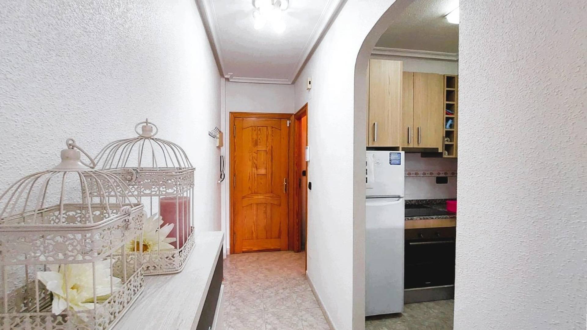 Fin lägenhet på 75 m2 med 6 m2 terrass och öppen utsikt mot pinjeskog i Orihuela Costa.. . Planlösning: 2 dubbelrum med inbyggda garderober, rymligt vardagsrum med öppet kök, stort badrum samt tvättstuga/förråd.. . Skick: Säljs möblerad och i perfekt skick. Hiss saknas för närvarande, men avgift för installation är redan betald.. . Området: Inhägnat boende med pool och parkering. Beläget mellan Playa Flamenca och La Zenia, ca 10 minuters promenad till havet och Zenia Boulevard.. . Idealisk som permanentbostad, semesterhem eller investering. Kontakta oss för visning!